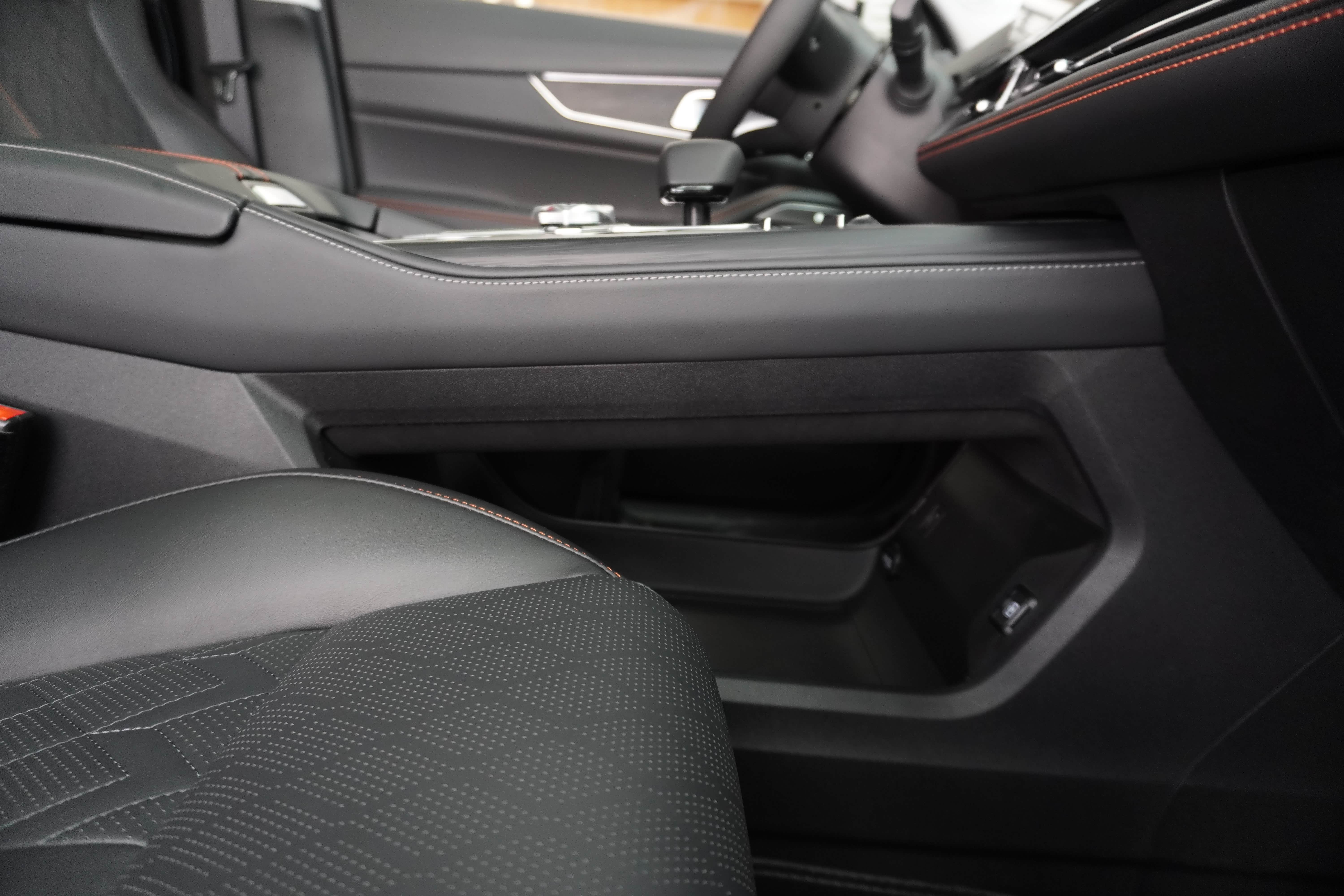 再说第二个储物空间非常丰富,它是一个电子挡把所以下面有一个楼空我们可以放一些包大的东西都可以,两个杯架尺寸有点大放一些一般的保温杯也是没问题,前面的话,一个无线充电区。