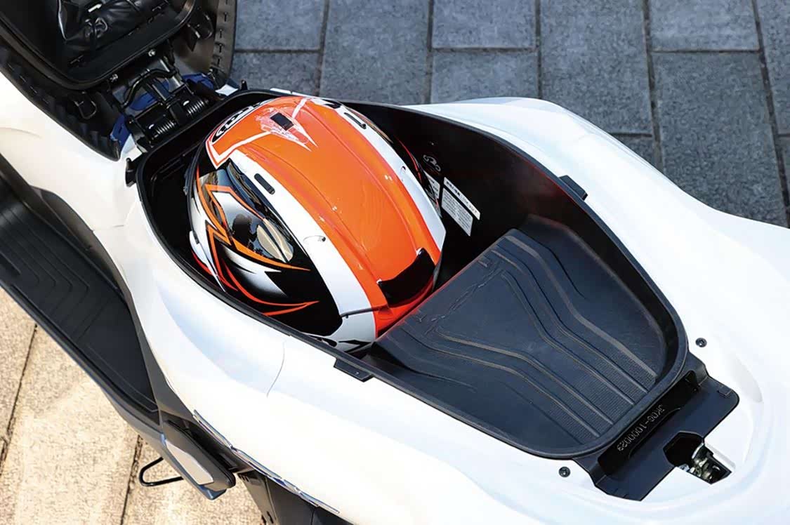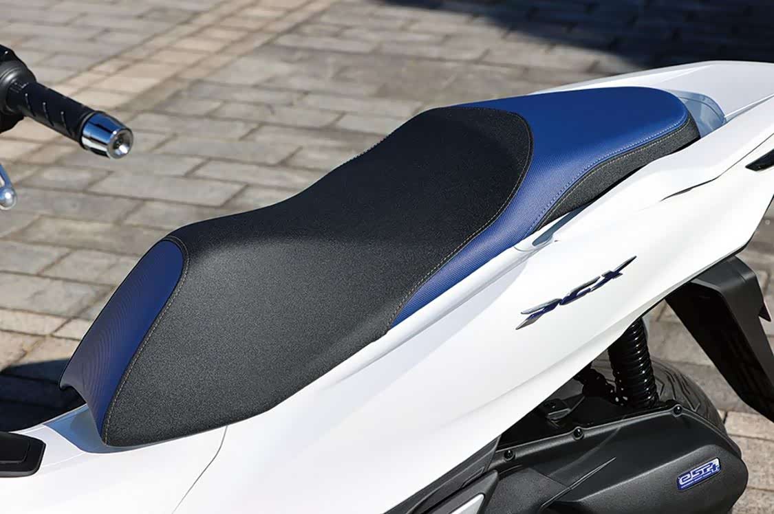 作为一辆混合动力版摩托车,PCX e:HEV的车身覆盖件、座椅皮革都使用了蓝色作为点缀。