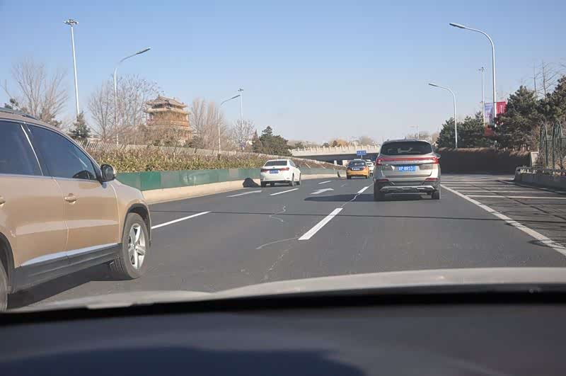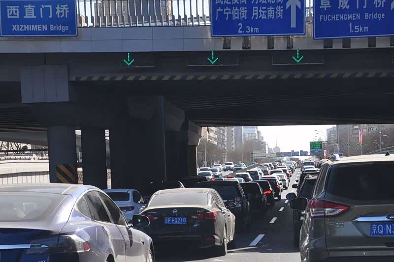 走几步停一下,磨蹭到复兴门,车才变少,随后的西便门至广安门一线,较为顺畅,顺畅一直保持到南二环的玉蜓桥。
