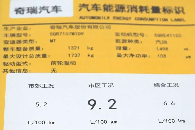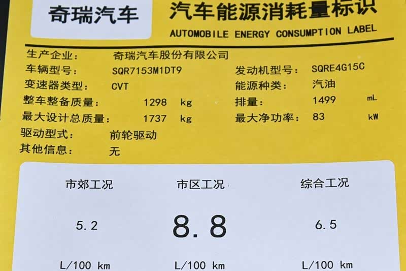 根据能耗标识——1.5手动的市郊、市区、综合油耗分别为5.3升、9.5升和6.8升/百公里;1.5自动则分别为5.2升、8.8升和6.5升/百公里。