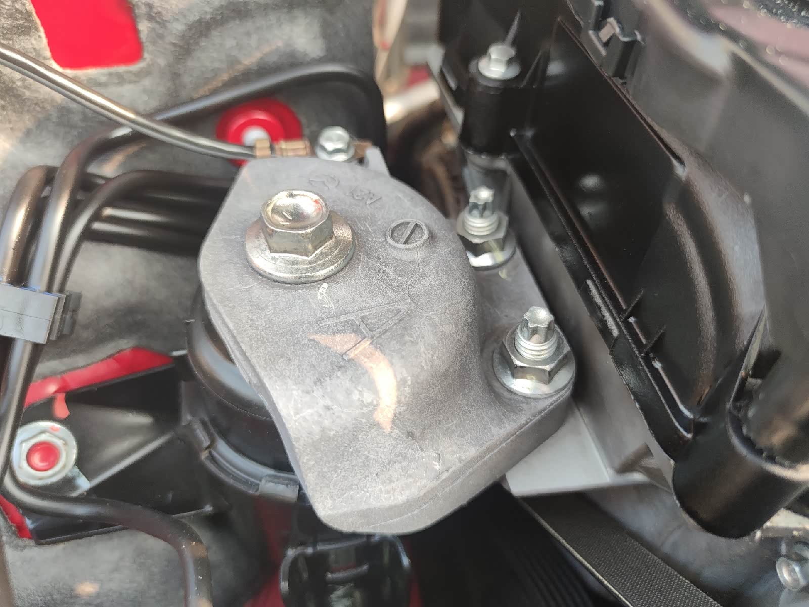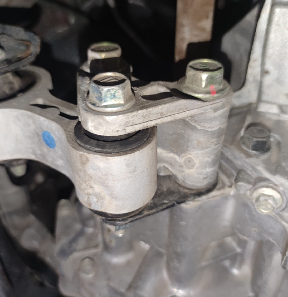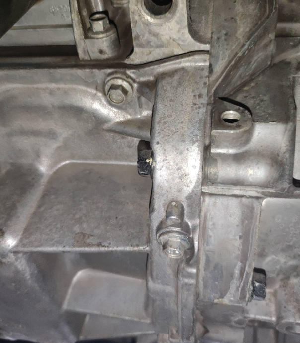 刚说完就来了,注意看螺丝!用来固定发动机的机脚,这个才是最主要的,发动机想要下地,不拆它肯定不行,所以以后看到机脚螺丝有拆卸,那就需要注意了,很可能发动机就吊装过,这台没有任何拆卸的情况。当然也有可能因为单是机脚出问题了,所以还要结合发动机的附件以及底盘检测来判断。
