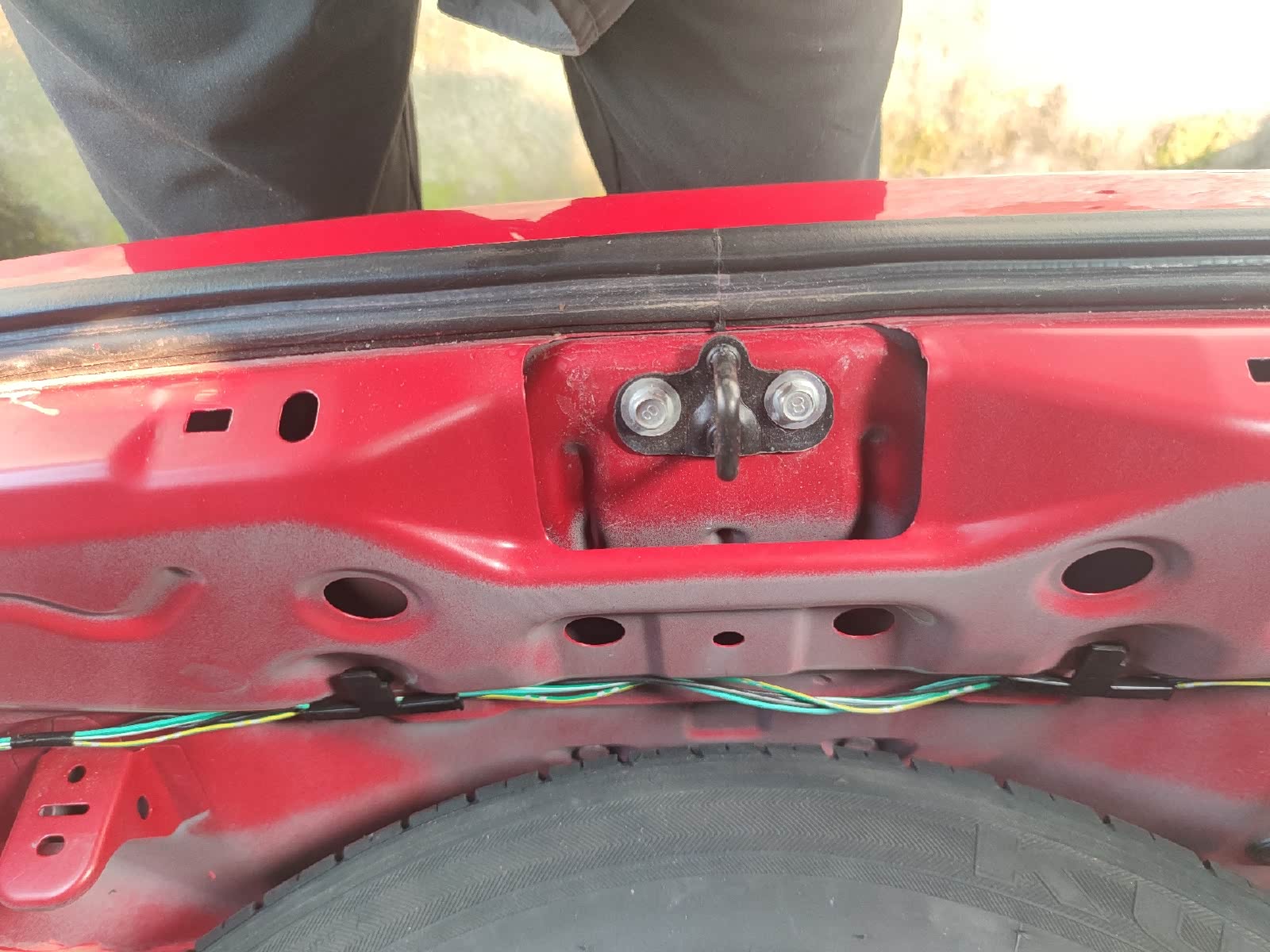 打开后备箱检测后围板,孔位,打胶,焊点都符合原厂工艺,足以证明它是没有发生过碰撞的,后部追尾排除。