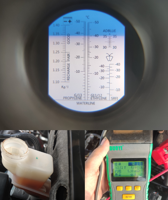 油水电,测一遍,除了刹车油回去需要更换,其他状态还不错,回去不需要更换也可以正常使用,多注意就好了,发动机舱检测结束没有大问题,就是需要保养一下。