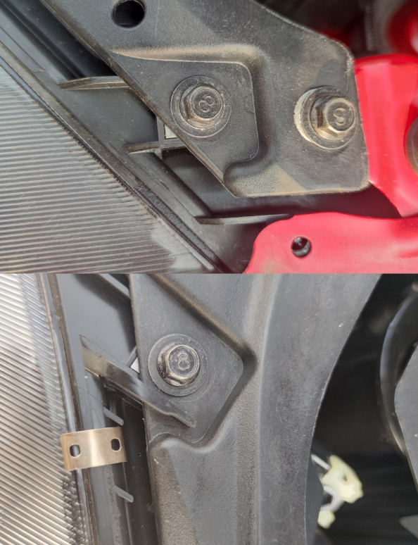 两侧大灯的固定螺丝都有拆卸,但是生产日期符合车辆的出厂日期,细看大灯灯壳和灯体连接处的打胶,明显是后期重新密封的,那大灯拆卸很可能就是因为这个了,改装灯光、大灯密封垫老化等,都会导致拆卸灯壳,这个倒不是大问题。