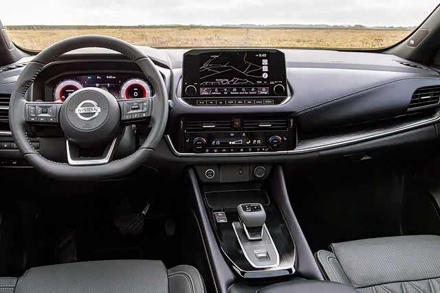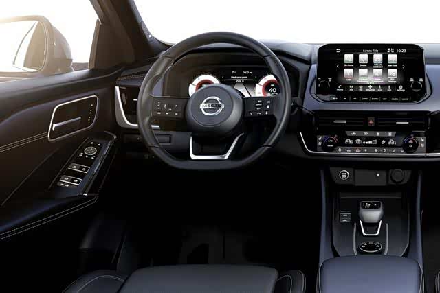内饰采用了和全新奇骏相似的整体设计布局,12.3英寸全液晶仪表和9英寸悬浮式中控屏的加入带来了不错的科技感,车内还通过全新的材质来承托出不错的内饰质感,比如:带有有缝线工艺的皮革、类似木纹材质的中控台。