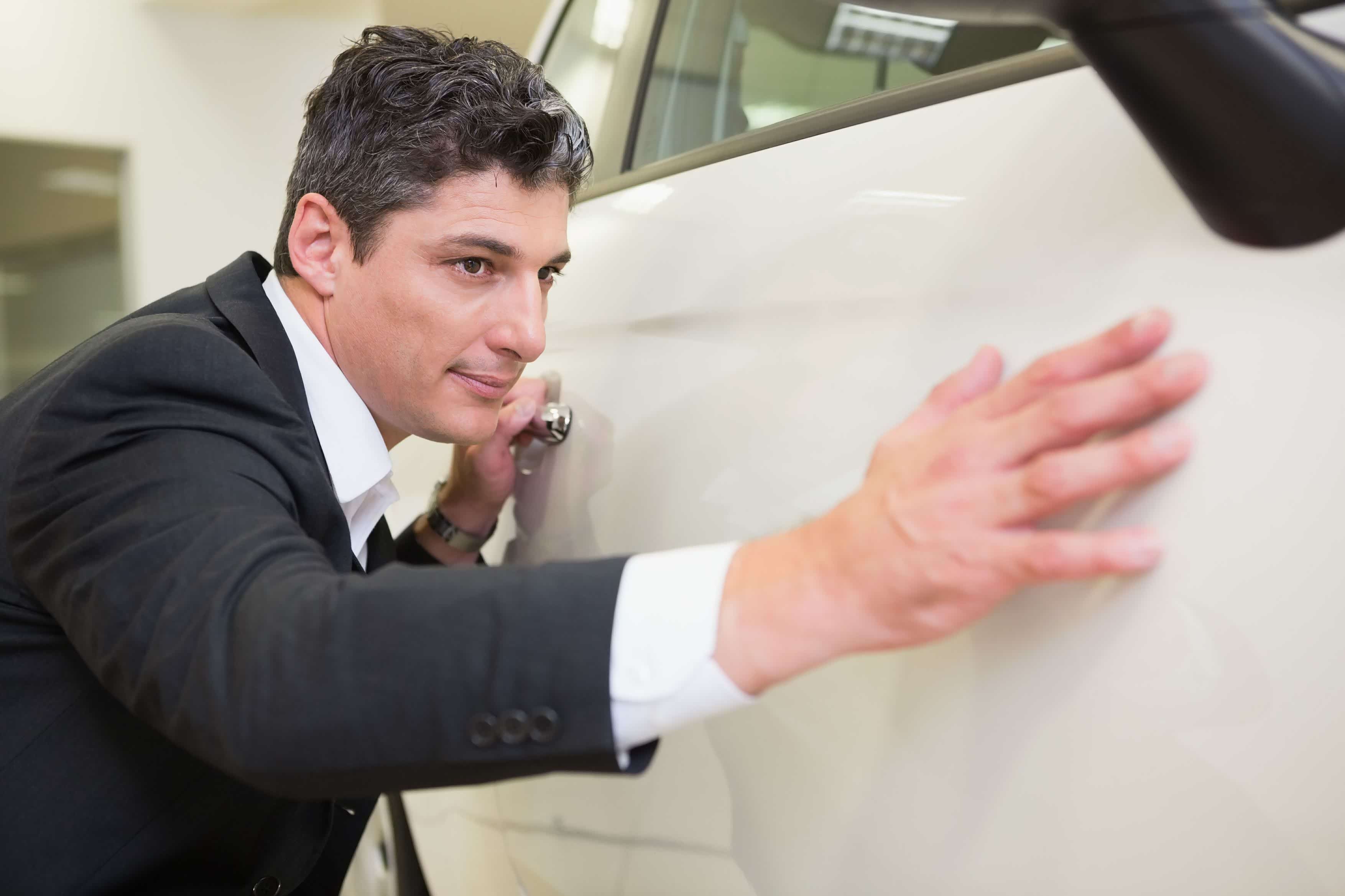 将新车开到一个光线充足的地方,先要绕车走一圈,依次检查车身颜色是否均匀、有没有划痕伤痕。重点是: 一定要检测最容易被忽略的边边角角是否有磕碰划伤以及喷漆的痕迹等。