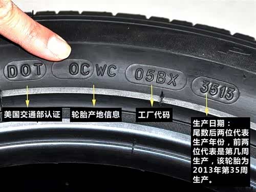 最重要的是:注意检查一下轮胎的生产日期,一般情况下,汽车装配会使用同一批次或相近批次的轮胎,但是之前也出现过一台新车原厂出厂的时候使用的是非同批次轮胎并且某一个轮胎生产日期长的现象。