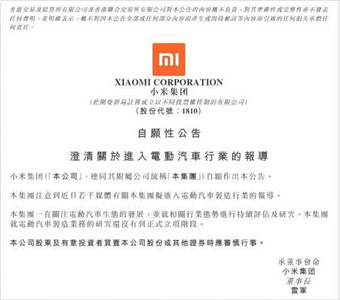 小米先是迅速回应," 等等看看,暂时没有。" 几日后,小米集团再次官宣称," 就电动汽车制造业务的研究还没有到正式立项阶段。"