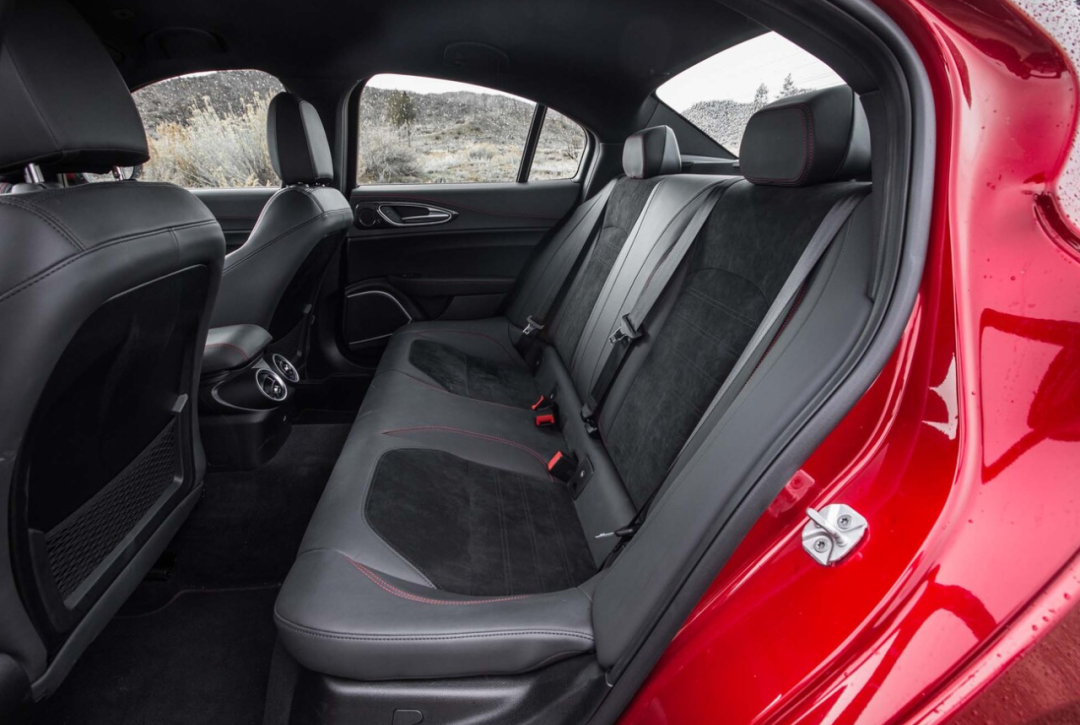 由于Mustang的定位是两门四座硬顶跑车,而Giulia的定位是四门五座三厢轿车。在乘坐空间上,Giulia自然要显得更从容一些,后排进出的姿势也比Mustang轻松许多。