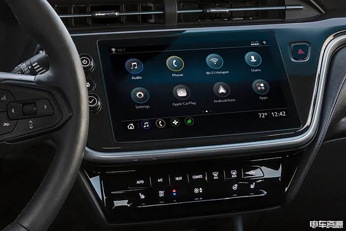 全新Bolt EV在方向盘样式上调整为三幅式平底设计,并在两侧设置了用于控制巡航、多媒体控制等按键。另外,值得一提的是,Bolt EUV在配置上配备了Super Cruise系统,因此在方向盘顶部增加了一块用于监测的部件。注:Super Cruise系统是通用旗下推出的驾驶辅助系统,该系统在进入自动驾驶模式时,驾驶员可以将脚从踏板上移开,并同时将手从方向盘上移开,然后由车辆完成剩下的工作。