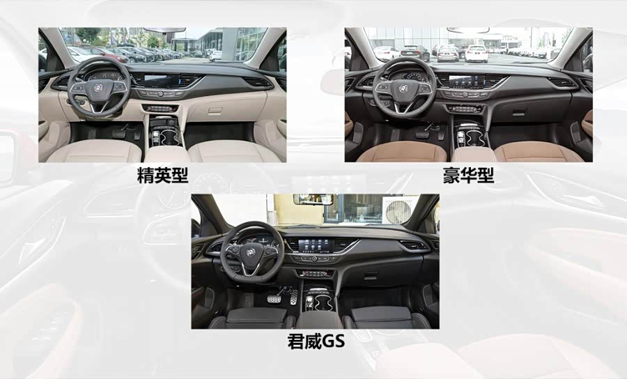 内饰部分,精英型用的是米色内饰,豪华型使用的是棕色内饰,到了君威GS用的就变成全黑内饰搭配红色缝线了,运动氛围更强。