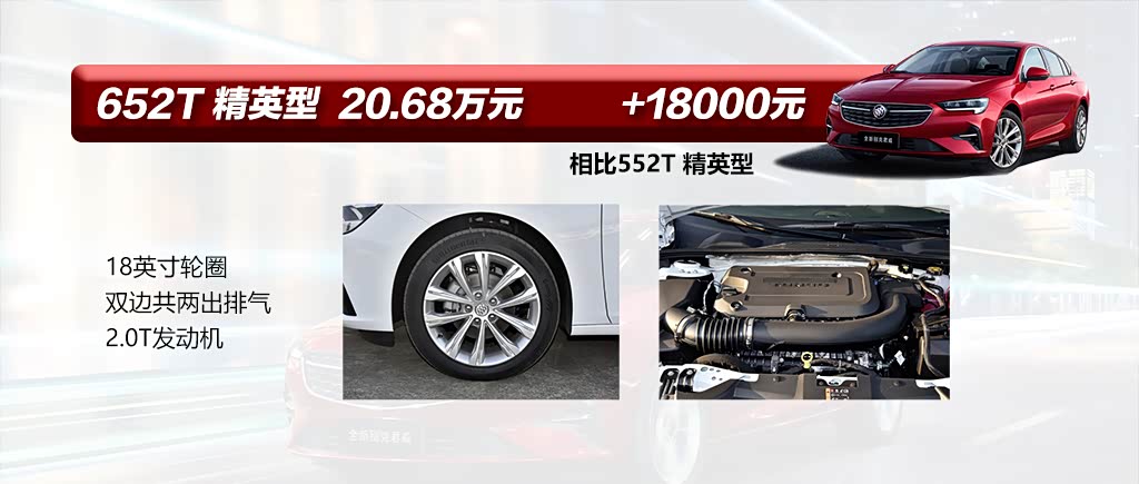 接下来看看652T精英型,配置上它与552T精英型一致,价格上相差的1.8万,主要差别在于动力的提升。配置上的变化是轮圈从17英寸升级为18英寸。车尾的排气也从双边共两出的排气装饰变成了真排气。2.0T车型在日常的驾驶中,动力更加充沛。