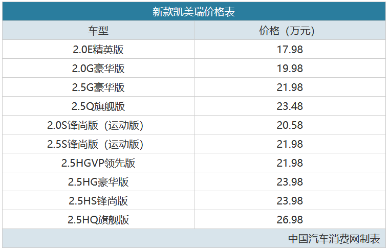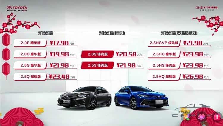 [新车上市]2月25号,新款 凯美瑞正式上市,新车带来2种外观风格以及3种动力,共推出10款车型,官方指导价17.98-26.98万元,具体售价请参见下表: