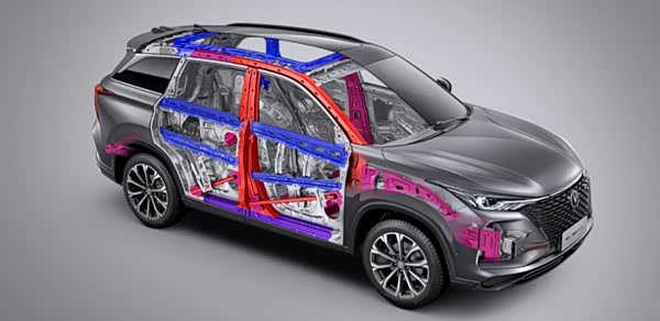 作为CS75 PLUS的重头戏,安全可靠也是与生俱来的。CS75 PLUS的研发经过千次仿真、百次实车碰撞,以热成型技术与超高强度钢辊压技术结合,铸就高强度、轻量化的超高强车身。而高达38.3%的热成型钢、超高强度钢占比,也保证整车结构的稳定性及乘员舱空间完整性。