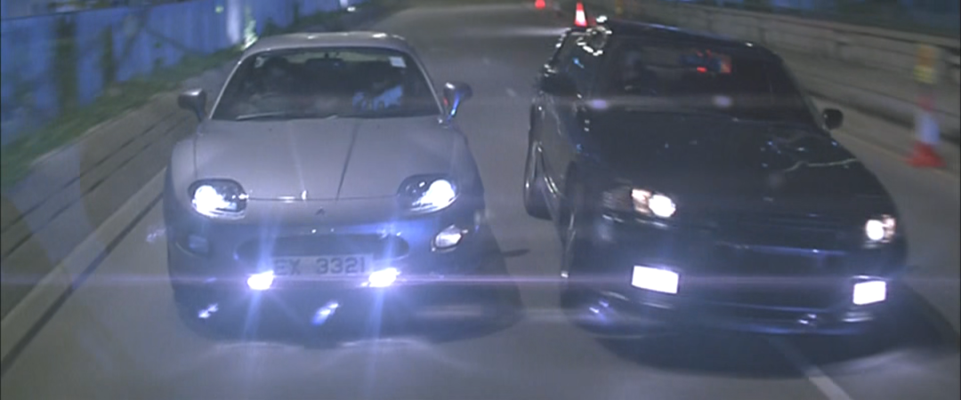 而电影中的反派是一个美国佬,是个兼具赛车手身份的犯罪分子,在一次挑衅警方的飙车活动中被主角阿火抓获。这是影片中的第一段飙车戏,是一段三菱FTO跑车与日产GTT的公路飙车戏。