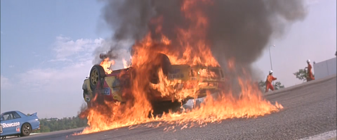 这是整个电影的一大转折点,也是影片中的第二段飙车戏,将地点转向了赛车场的正式比赛。主角阿火用毕生积蓄为自己改装了一台EVO参赛,但却在练习过程中烧毁报废。在这毫无出路的情况下,得到了三菱方面的人的帮助,将赛车换为了3000GT,注意此车日版叫法为GTO,以迎战反派所驾驶的日产GTR赛车。