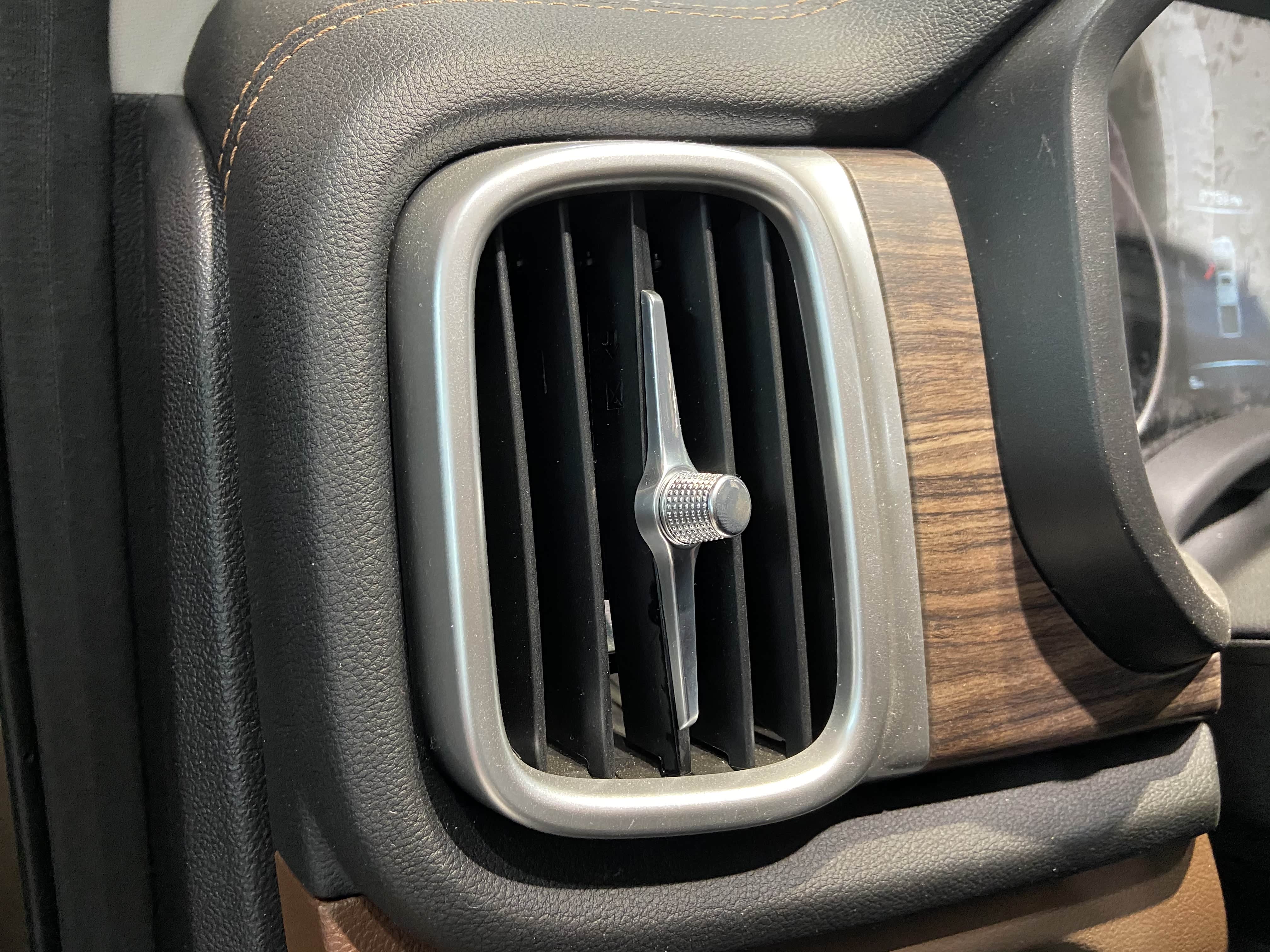 中控台面板上采用了大面积的木纹装饰,空调出风口和中央控制区域则是用了许多银色镀铬饰条点缀,这种棕色与银灰色撞色的设计倒是让车内提升了档次和质感,至少视觉效果上看起来不至于单调。另外,两侧的门把手还使用了皮革缝线,形成密集的菱形纹路,触摸起来让人感觉很舒适。