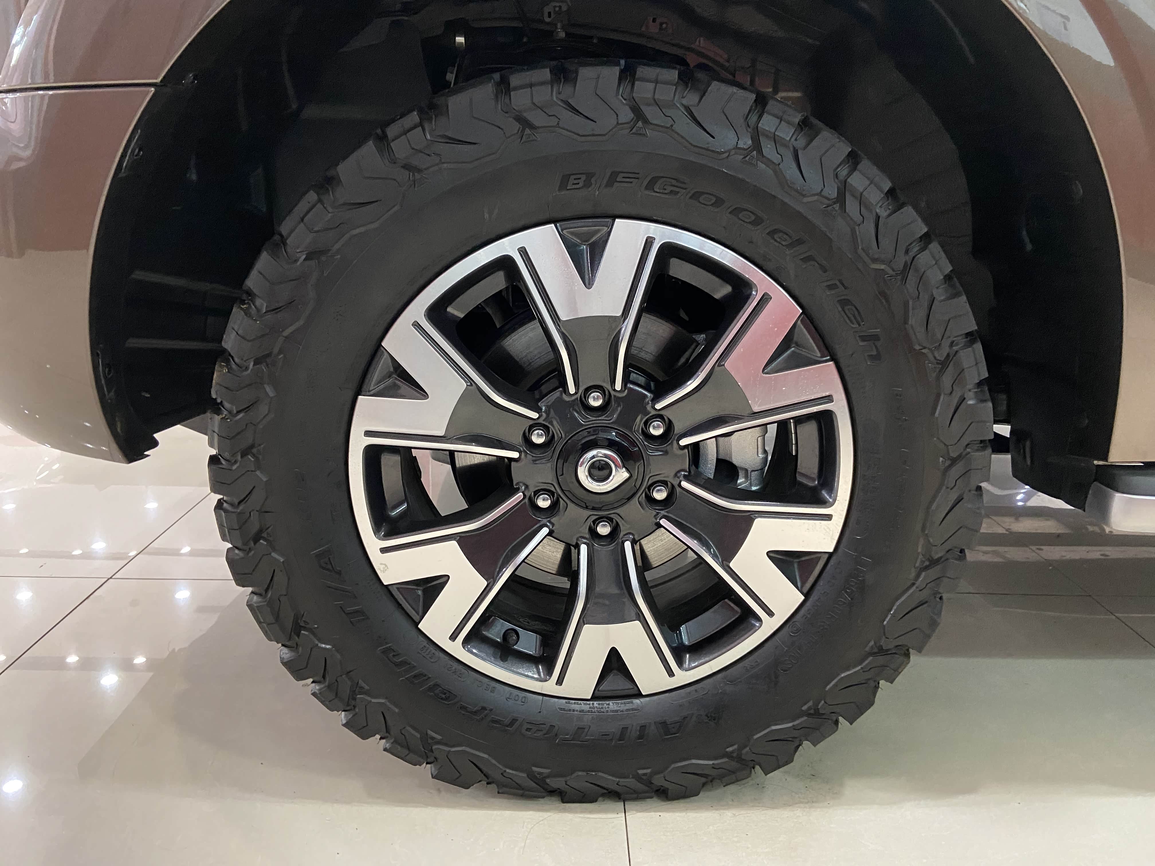 长城炮乘用版的轮胎规格为265/60 R18,放在这种“大块头”的车上稍微有些显小,不过应付日常使用问题应该不大。从图片中可以看到,它的轮胎胎壁要比普通家用车更厚,纹路也很深,主要为了保证复杂路况下的通过性。轮毂呈现花瓣式的造型,看起来非常漂亮。