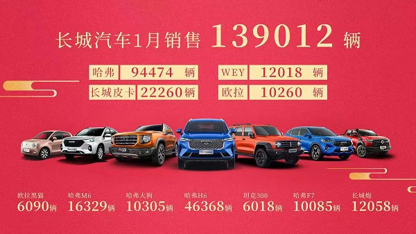 长城汽车走出国门已是多年前的事了,其海外市场表现逐年向好。今年1月,长城汽车海外市场累计出口新车10,972辆,环比增长28%,同比大增147%。