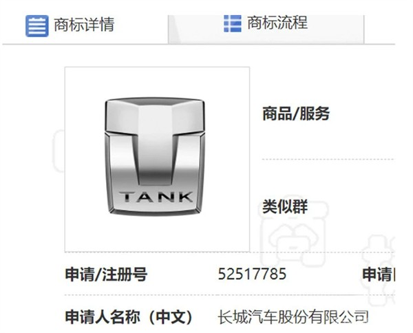 据国内媒体报道,长城汽车WEY品牌旗下车型坦克或将独立,目前在中国商标网上可查到长城汽车股份有限公司已正式申请注册的“TANK”商标,这意味着,“坦克”在未来将跟WEY品牌分离并并列存在,是继哈弗、欧拉、WEY和长城皮卡之后,长城汽车生出的第五大品牌。