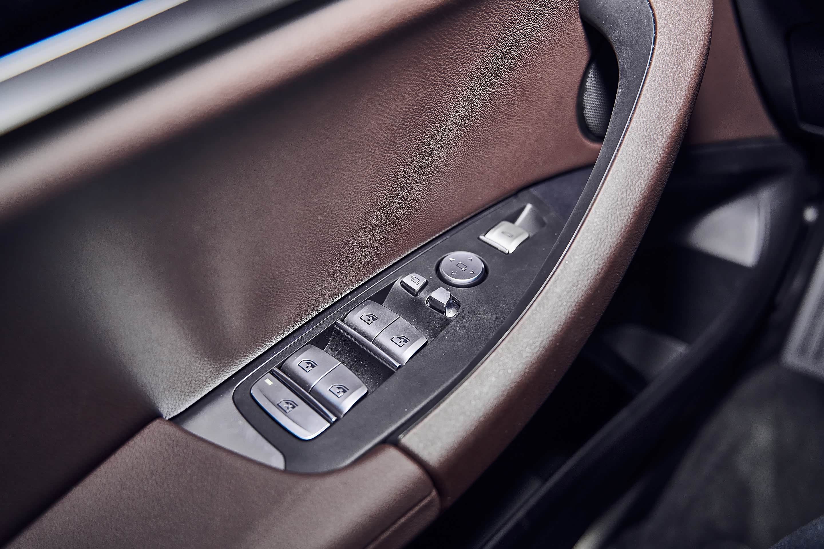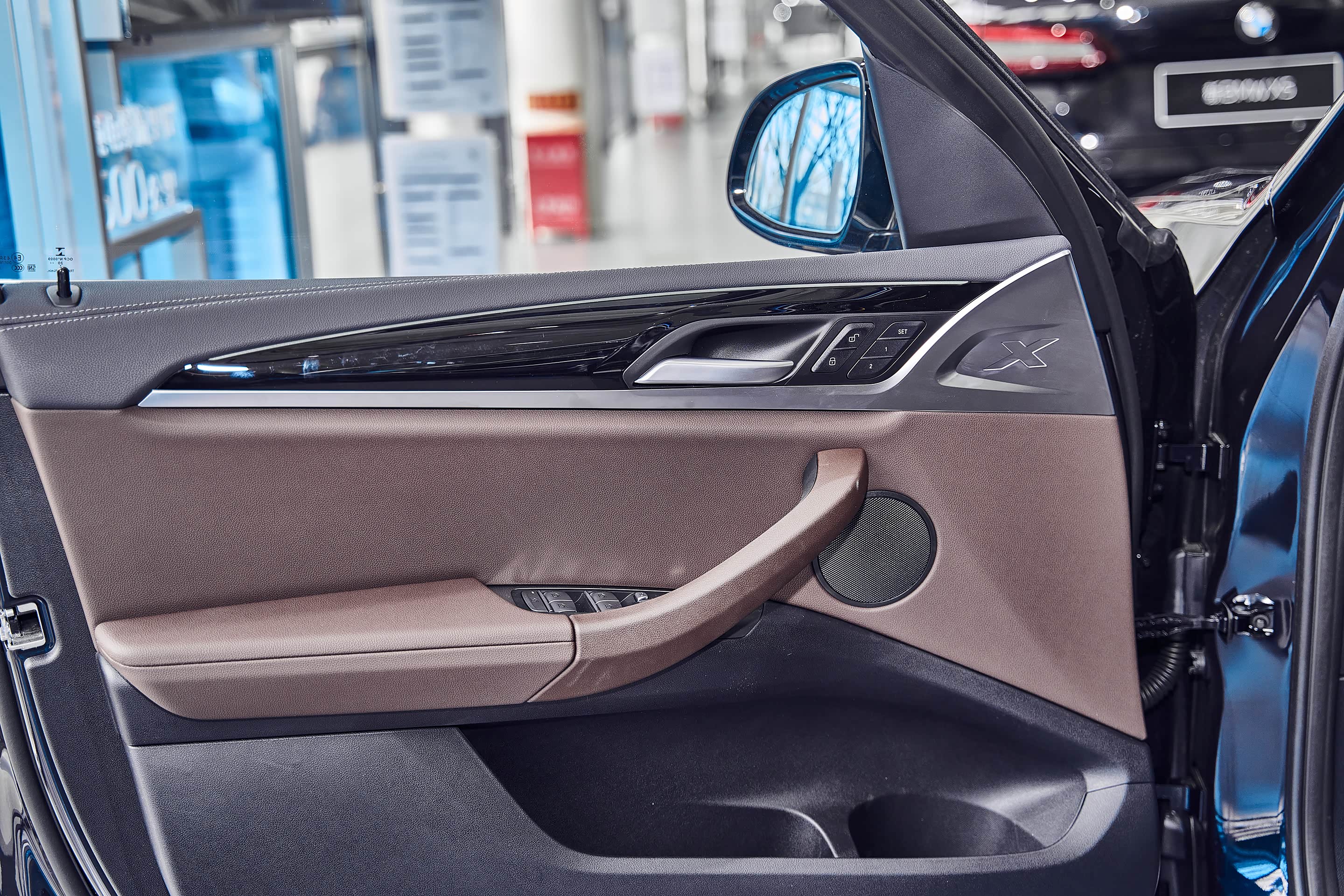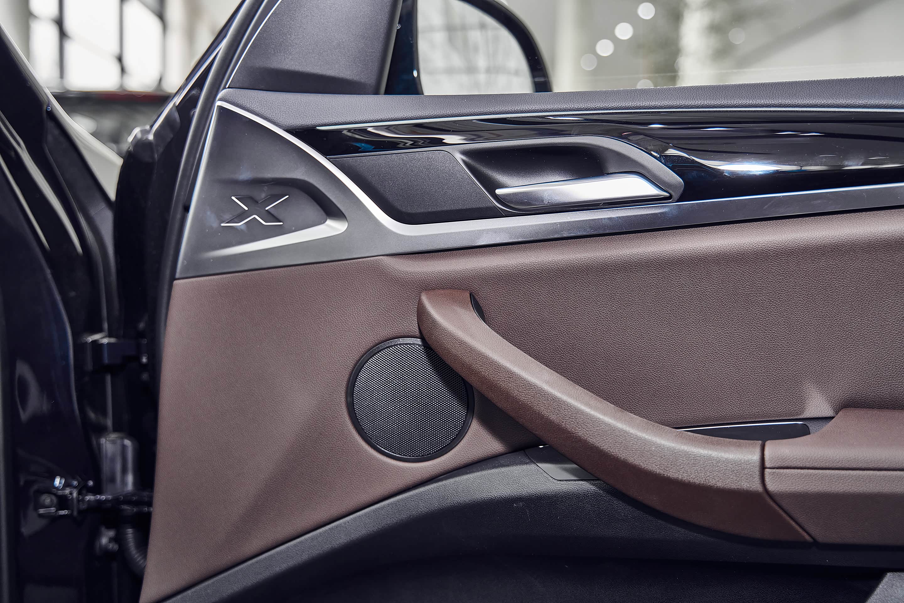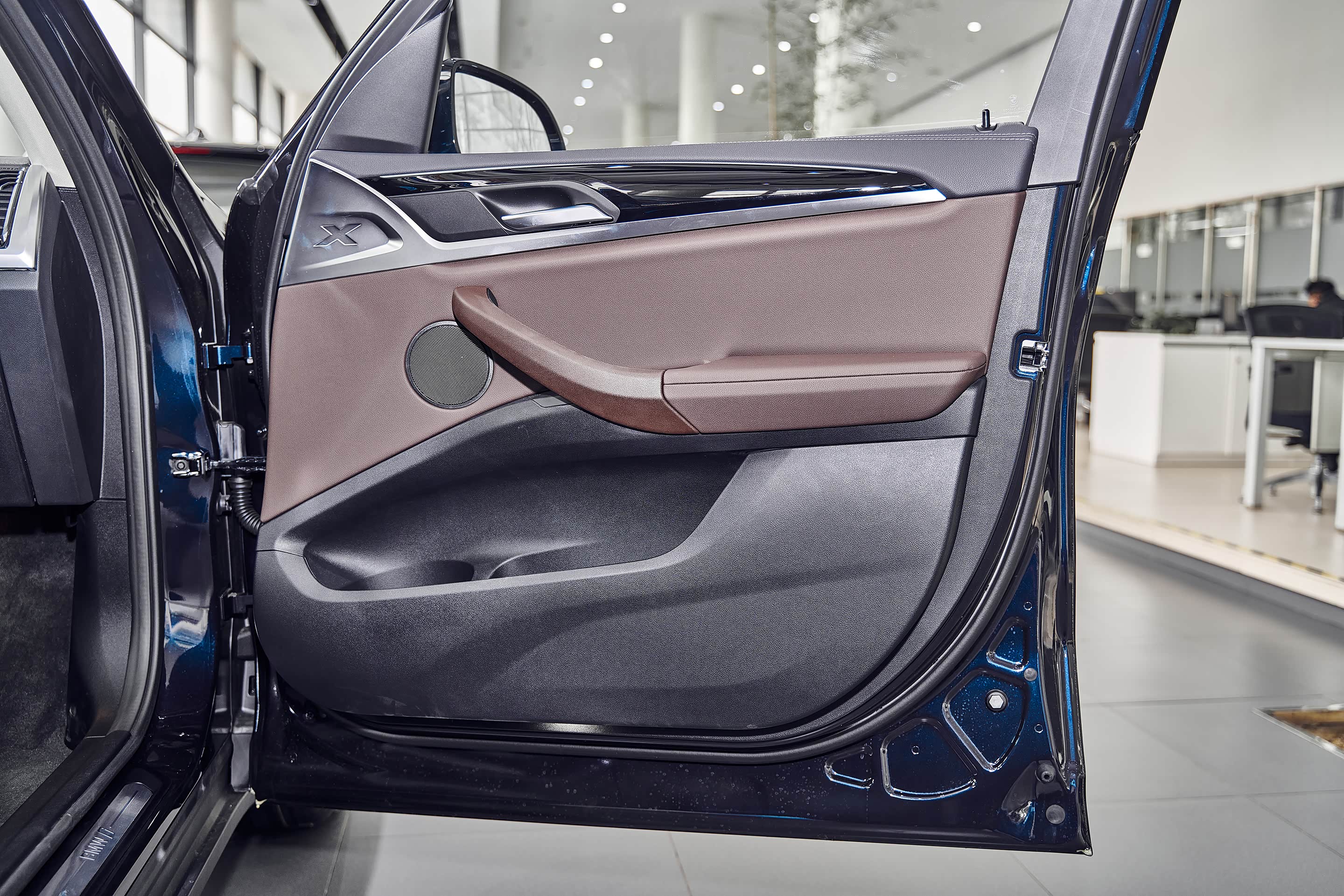 车门装饰板的配色和座椅相同,主驾驶车门有两个座椅记忆按钮,配置了四门一键升降和后视镜折叠功能。X镀铬徽标的装饰面板起到非常好的装饰作用;领先型配置了普通的音响,只有创领型才拥有Harman/Kardon高端音响系统。此外还配置了炫丽的车内氛围灯,可以根据自己的喜好调节颜色。