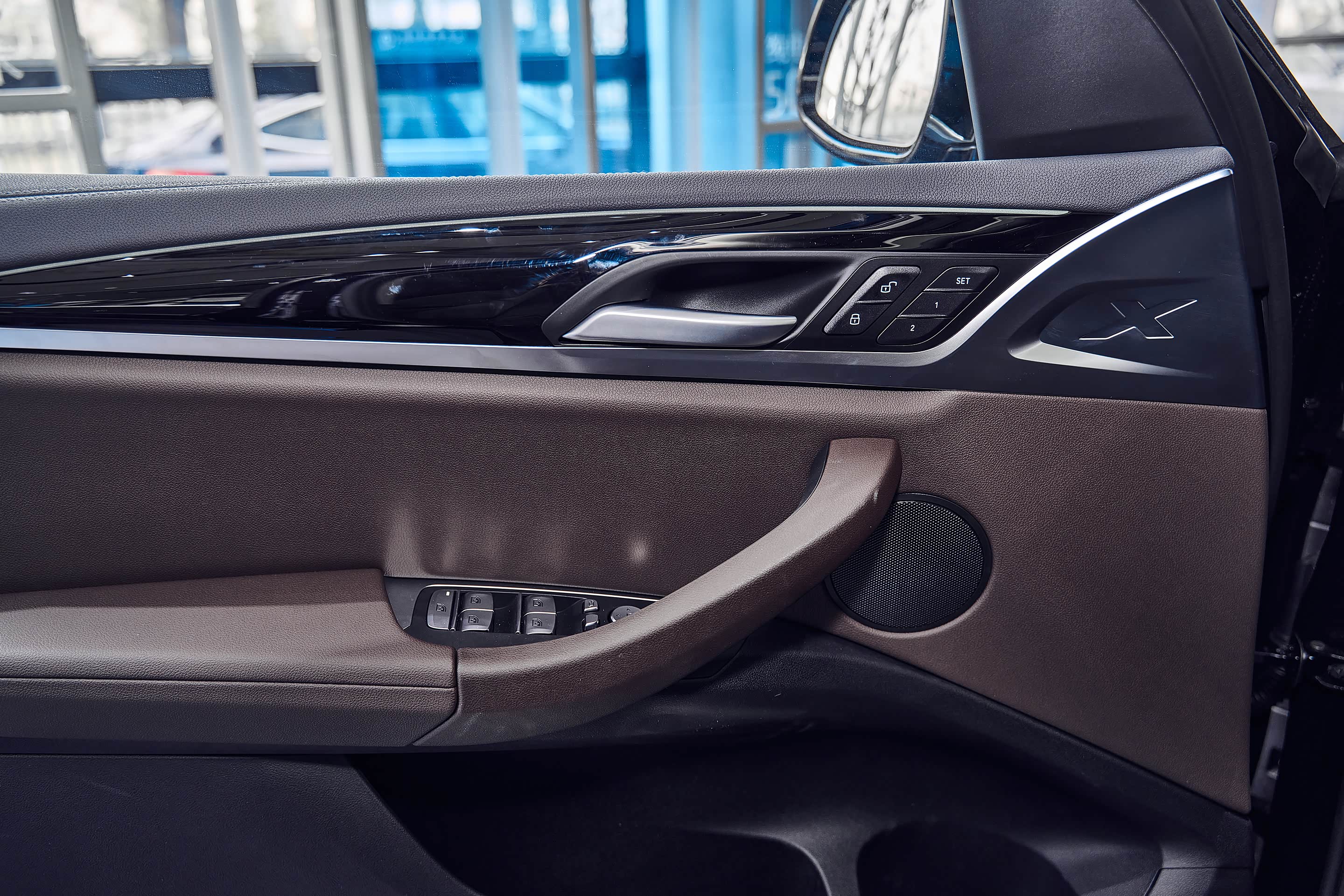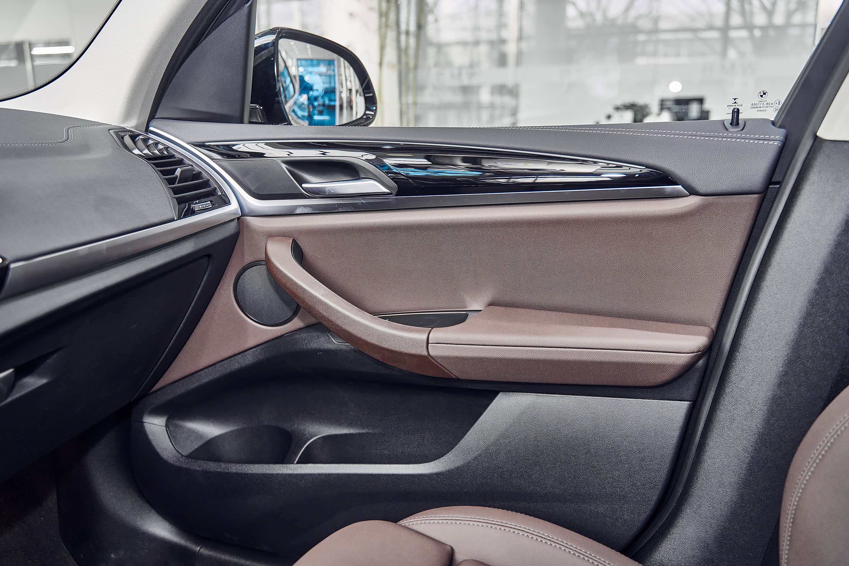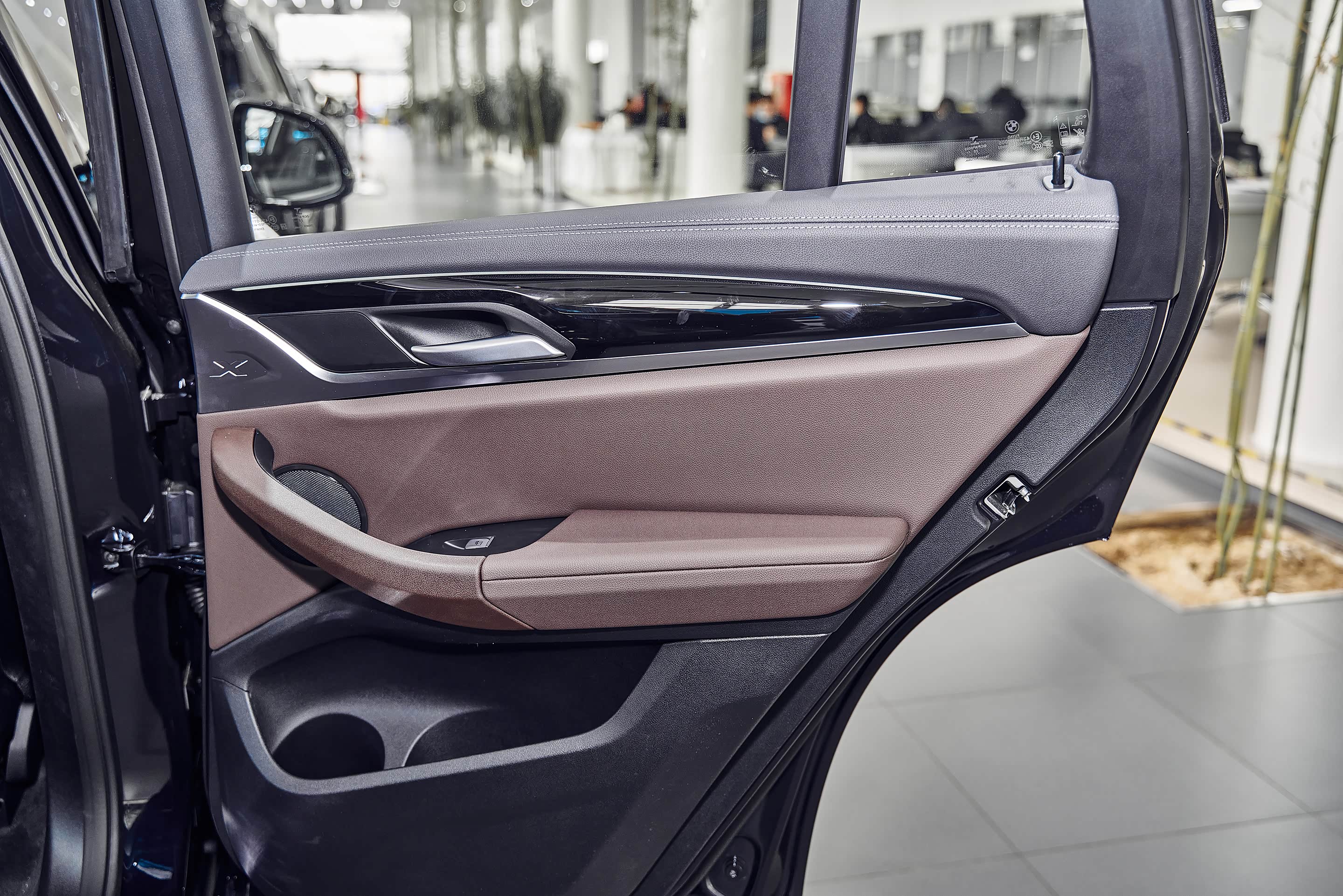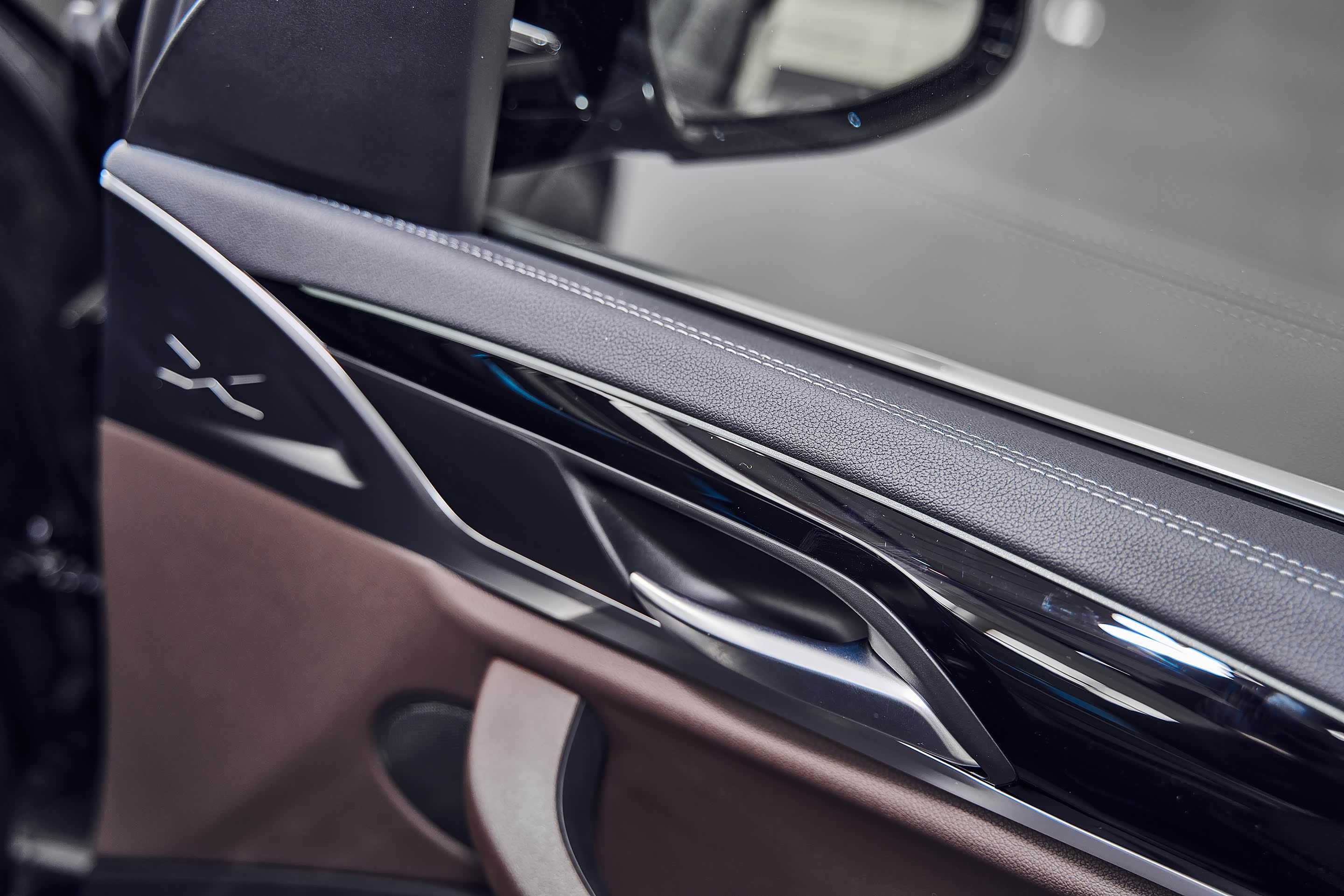 车门装饰板的配色和座椅相同,主驾驶车门有两个座椅记忆按钮,配置了四门一键升降和后视镜折叠功能。X镀铬徽标的装饰面板起到非常好的装饰作用;领先型配置了普通的音响,只有创领型才拥有Harman/Kardon高端音响系统。此外还配置了炫丽的车内氛围灯,可以根据自己的喜好调节颜色。