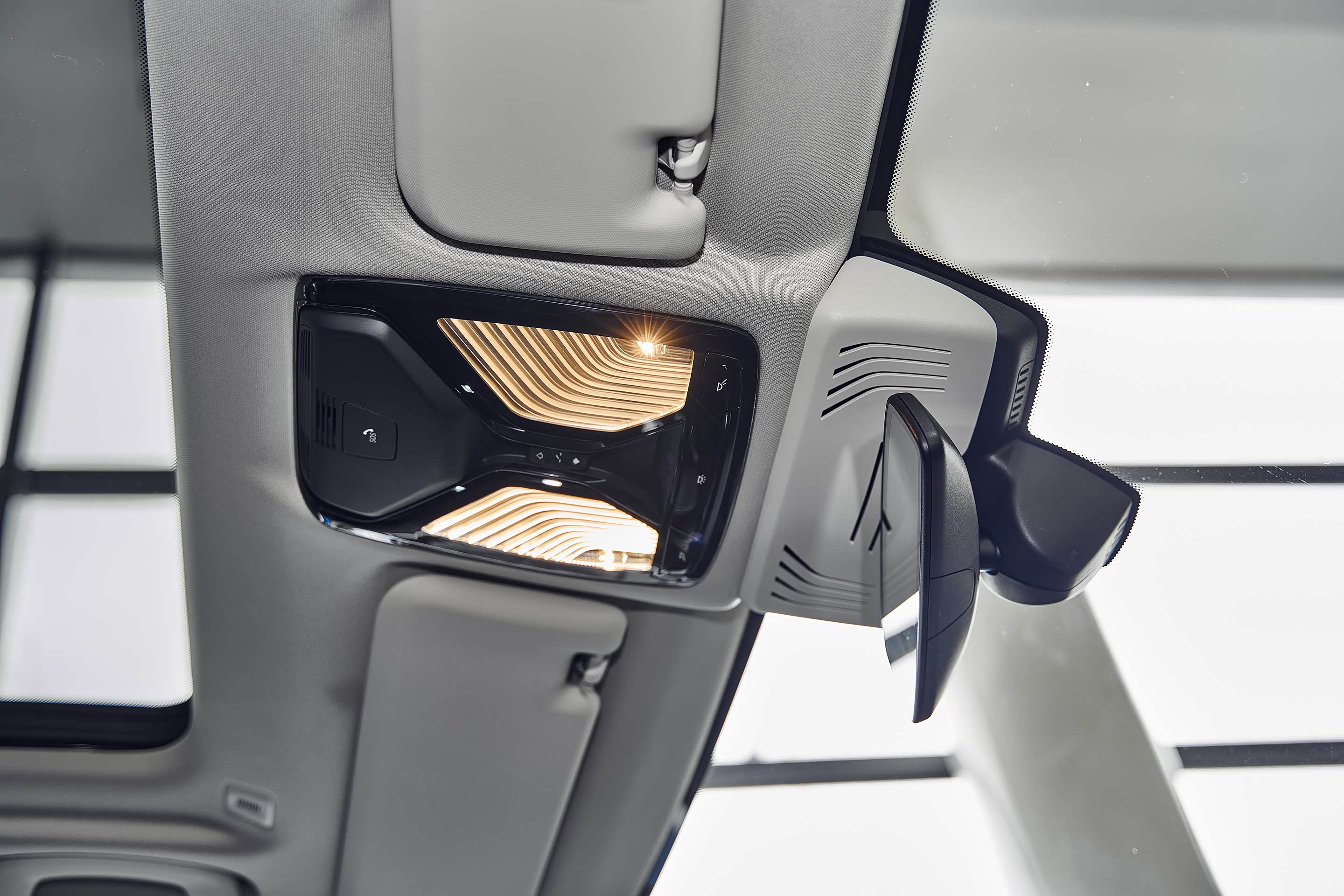 中央控制系统集成了电子档把,车机控制按钮和驾驶模式的选择按钮。电子手刹还有一个隐藏功能,如果在行驶中身体不适,可以扳动此按钮,拉起电子手刹,车辆会紧急制动,打开双闪,并且会自动链接SOS紧急救援服务。