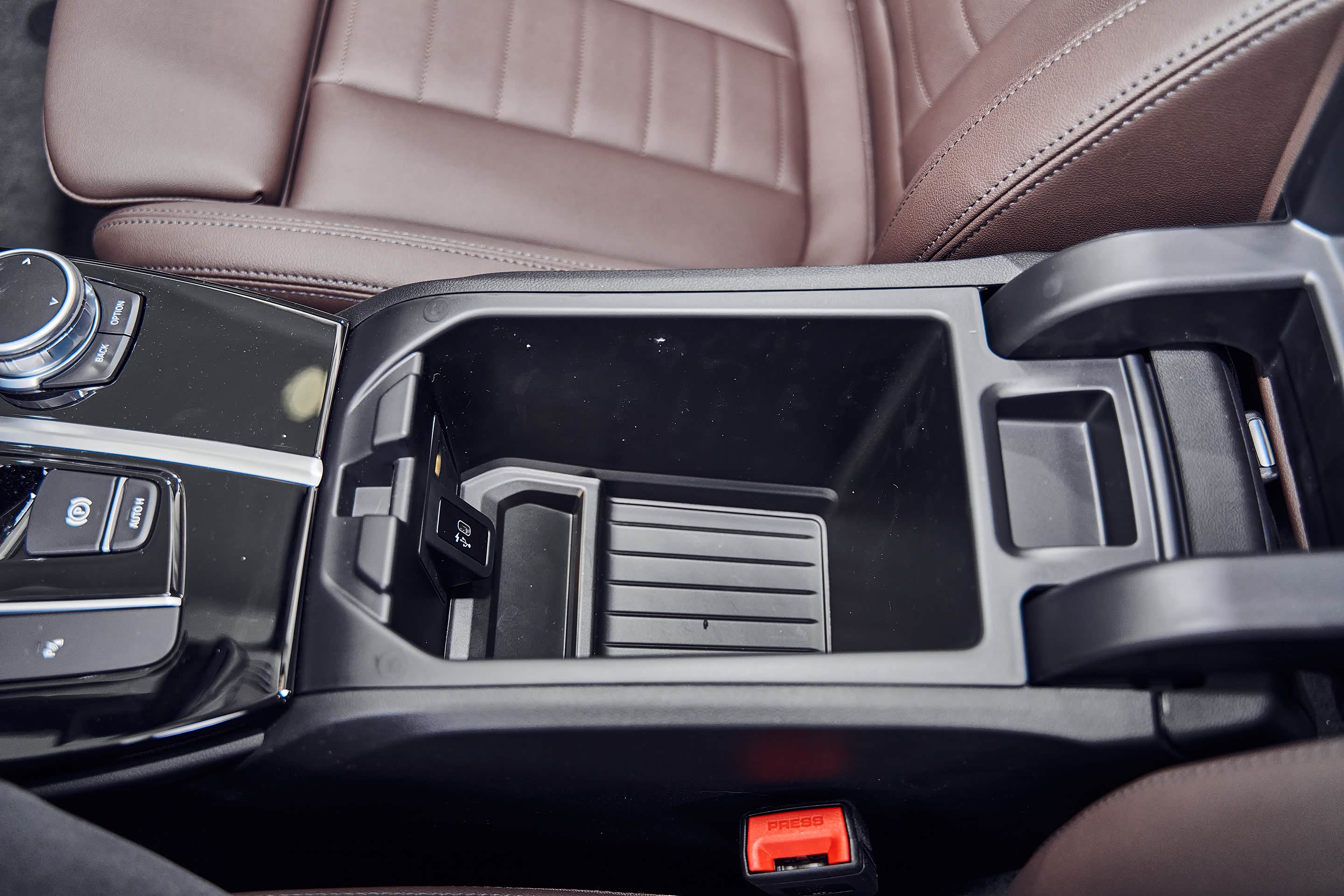 中央扶手箱的储物空间良好,内有一个TYPE-C充电接口,中央控制台前面的滑动盖板下是两个杯架、一个12v充电接口和一个USB充电接口。副驾驶储物箱属于常规尺寸。前后车门各有一个放置杯子或者饮料的凹槽,后排的中央扶手有一个弹开式的杯架托,可以放置两个杯子。上面是一个盖板,打开后可以看到一个面积很大浅浅的储物格。后备箱的盖板下也有一个可以小凹槽的储物格,可以放置一些小物件,比如一些工具什么的。