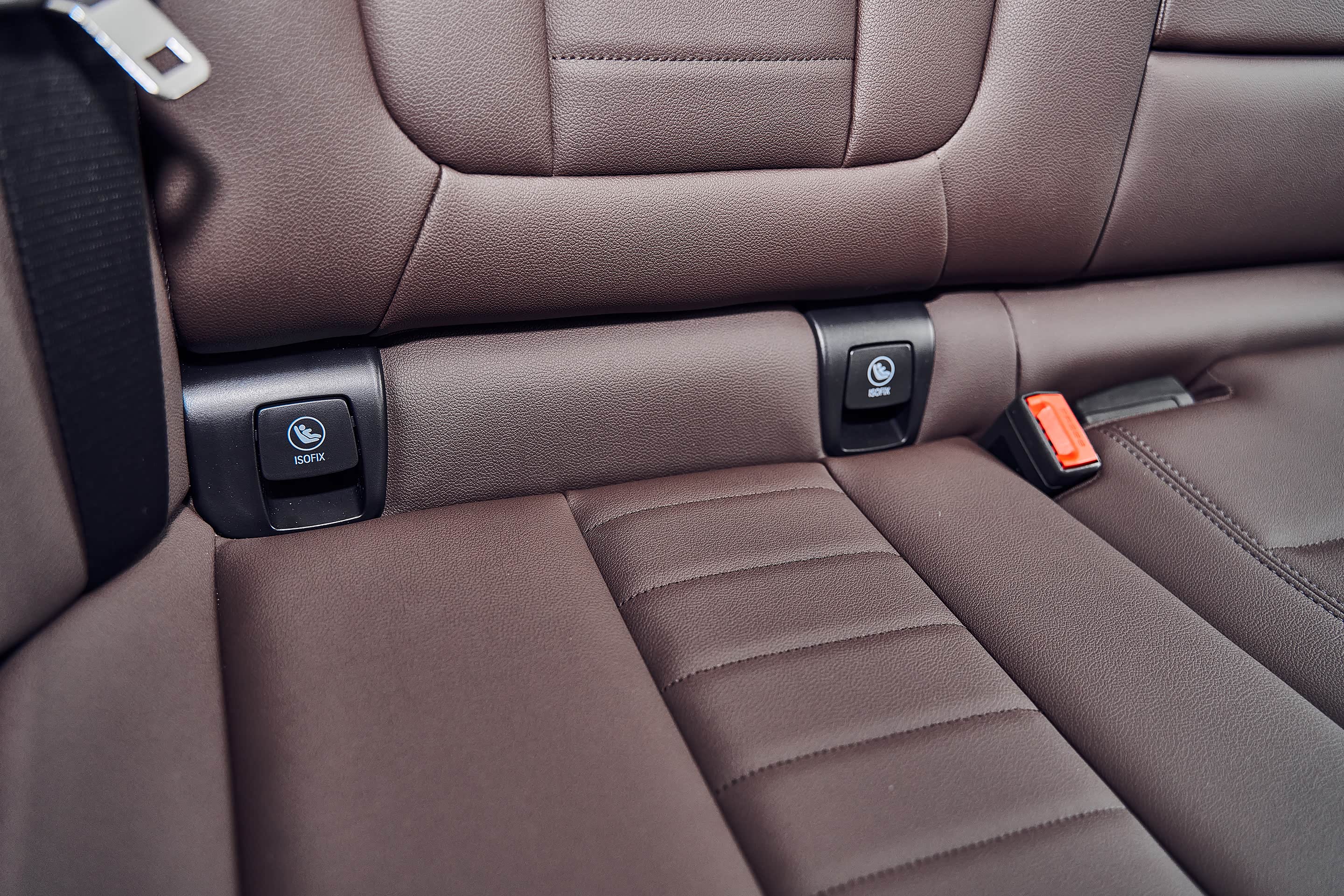 后排中央配置了可调节温度的空调系统,下面有两个TYPE-C的充电接口,中央隆起比较高,后排乘坐两位乘客较为舒适,座椅底部设置了ISOFIX儿童安全座椅的固定接口,后排座椅可以按40:20:40比例放倒,以此来拓展后备箱的空间。