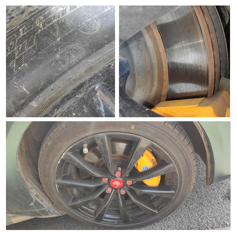 轮胎不用说了早就换过不知道第几个了,轮毂外侧也存在多处刮蹭,介意的话后期翻新一下即可。