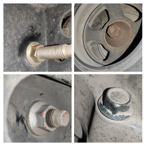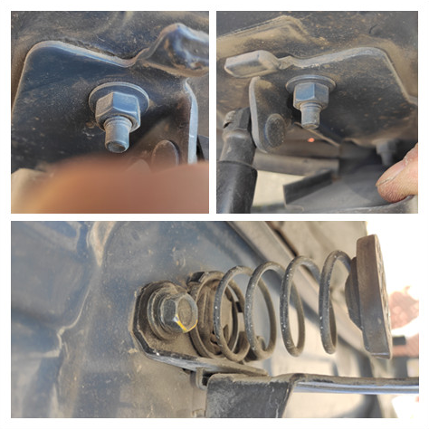 从下面可以看到前曲轴螺丝完好无拆卸,元宝梁螺丝也没有动过,变速器机脚螺丝也是原厂状态,发动机变速器结合处螺丝同样没拆过,通过这些情况已经能够判断发动机没有吊装也没有分解维修。