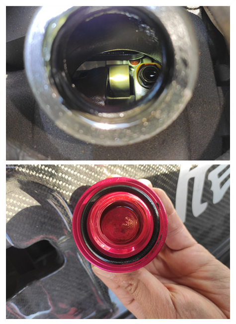 打开发动机注油口可以看到内部机体呈现金属色泽,情况还是比较不错的,凸轮轴也没有积碳和油泥等附着物。说明车主用车养护还是到位的,要知道车也像人一样,吃好喝好,烦恼少,自然而然显年轻。