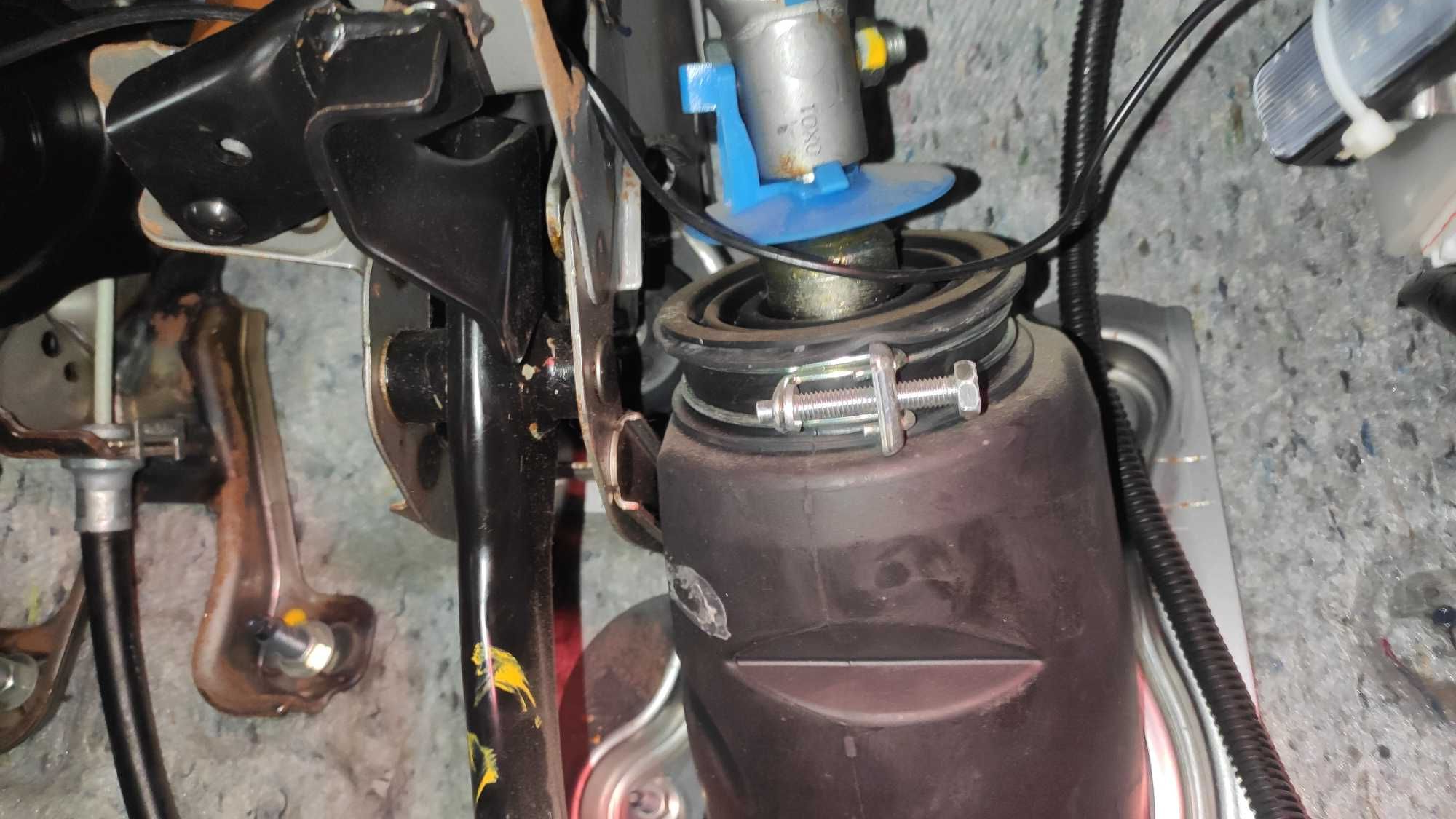 检查方向盘转向管柱总体完好,缝隙处无泥沙淤积,旁边附件少量锈蚀,无需留意。