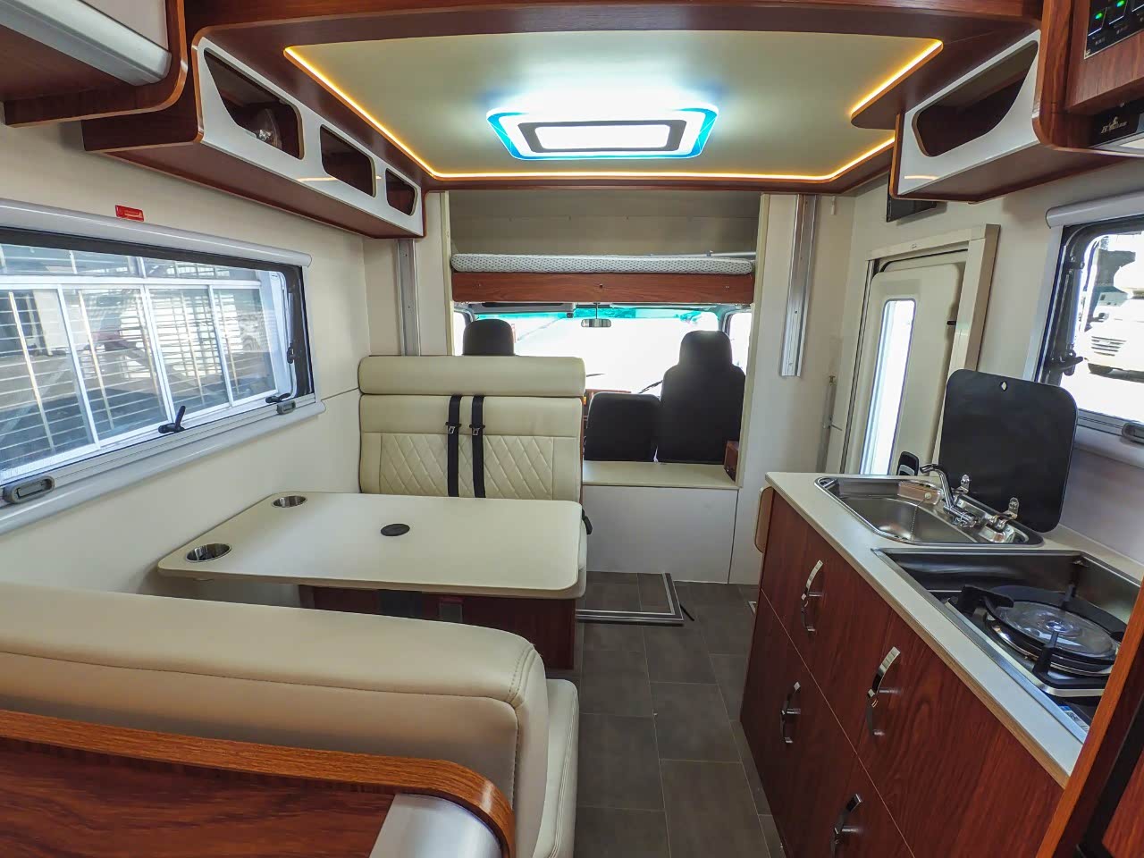 由于发动机位于驾驶室的座椅下方,上装可使用的空间就比普通的大额头房车还要大一些。