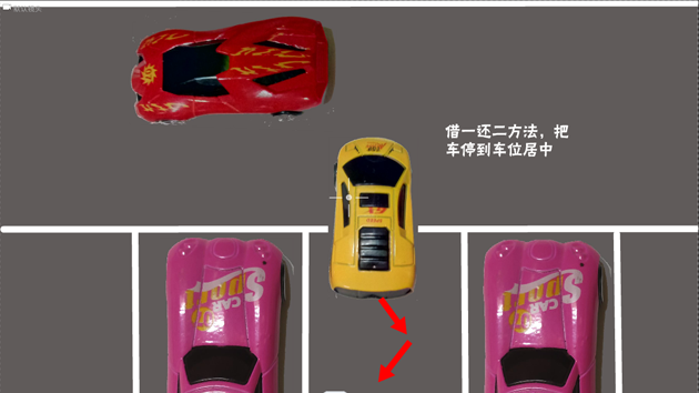 当车正的时候,把方向回正,从后视镜中观察一下两边距离,如果居中就直行后退,直到目标位置停车即可。如果出现一宽一窄的情况,就用史教练之前教大家的万能口诀,借一还二的方法,迅速把车停泊到车位居中。