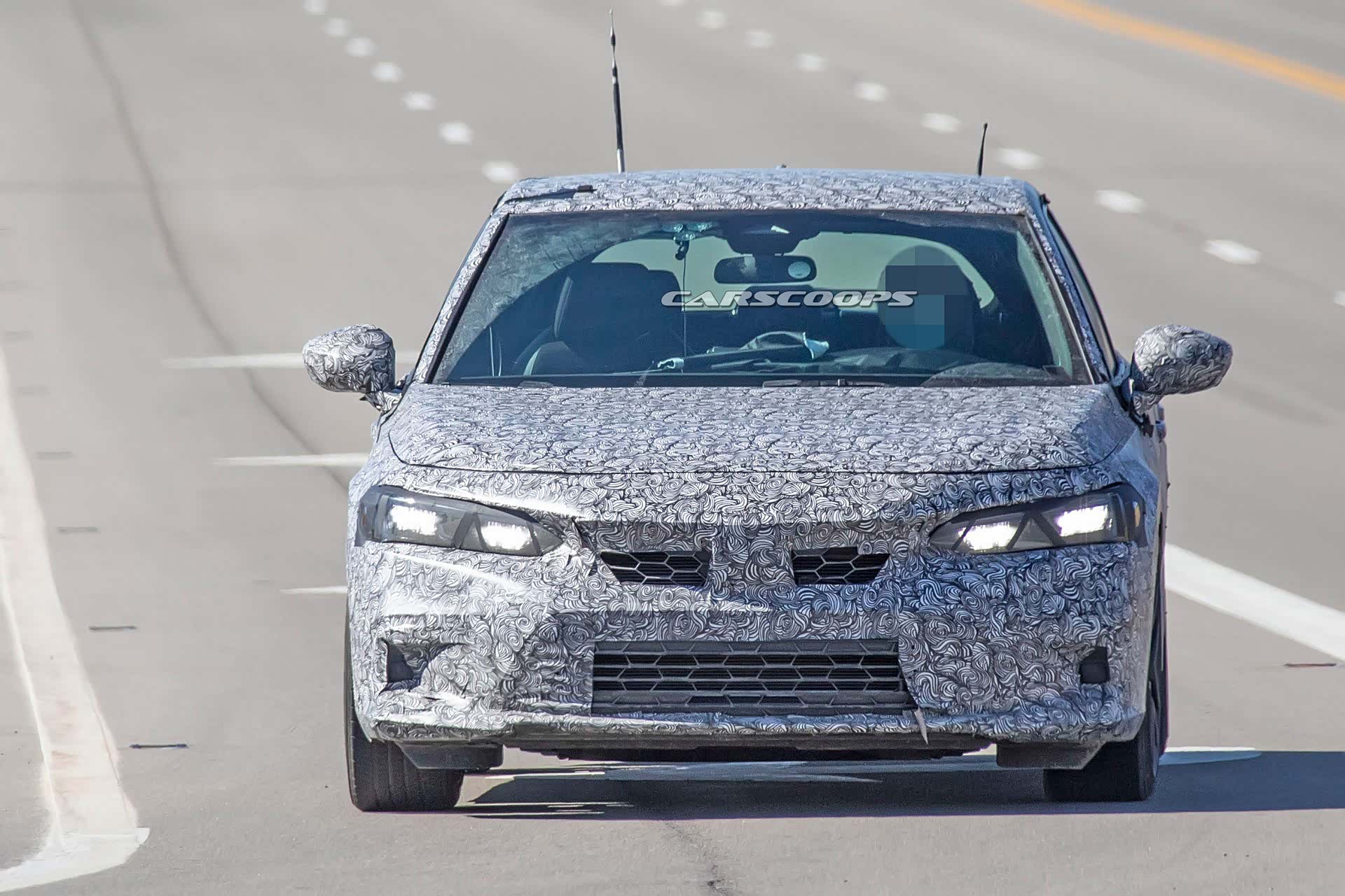 外观方面,从路试谍照来看,思域两厢版的车头基本保持了此前亮相三厢版原型车的风格,有所不同的是,两厢版的上半部分进气格栅由横条样式改为蜂窝状,运动感更强。