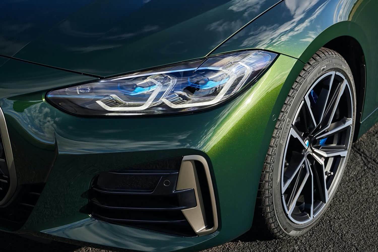 外观方面,全新宝马M440i整体延续了全新4系的设计,依然是那个十分夺目的大鼻孔格栅,内部采用了点阵式的设计元素,科技感和豪华感都不缺乏。另外,车头下方还可以看到面积颇大的中冷器进气口,预示着其强大的动力性能。车头两侧的LED大灯造型十分修长,功能方面还集成了BMW Laserlight自适应LED大灯,目前这项功能是作为选装出现的。