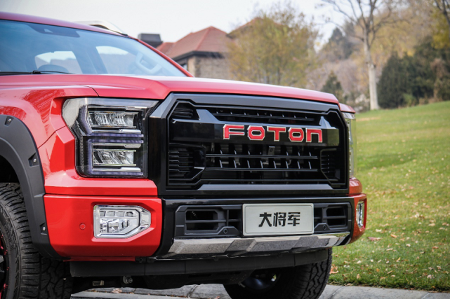 外观方面,新车整体造型极具硬派属性,采用大量平直线条勾勒车身。其中,前脸方面,新车采用大尺寸多边形进气格栅,内部由显眼的FOTON字母标识和黑色辐条式结构组成,再搭配上两侧造型方正的LED前大灯组,使得前脸视觉上十分霸气。