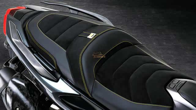 加热座垫座采用优质材料制成,缝制为黄色,以配合“回旋镖”和前挡泥板的优雅感。20周年纪念标志彰显了踏板车的特殊身份,加热的握把也是标准配置。