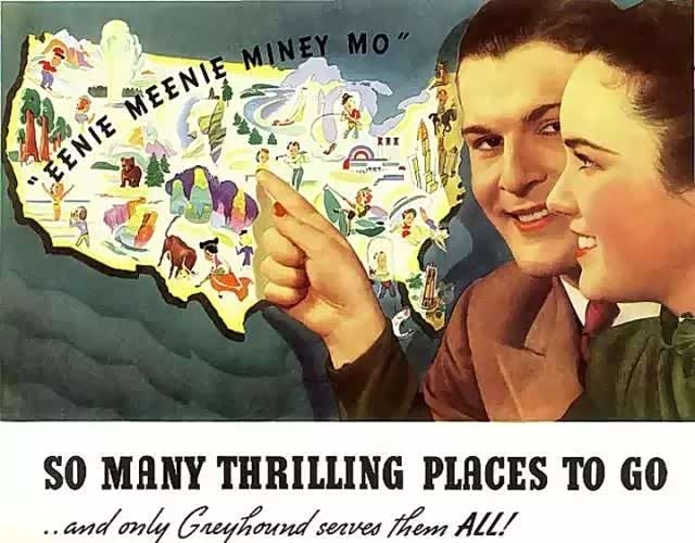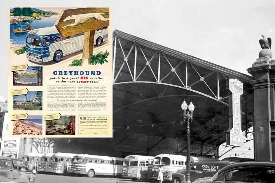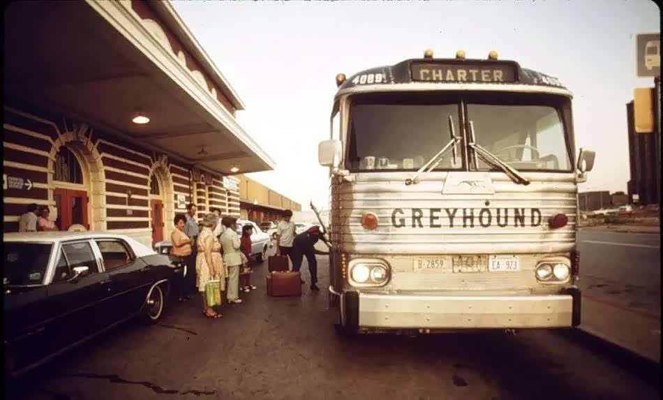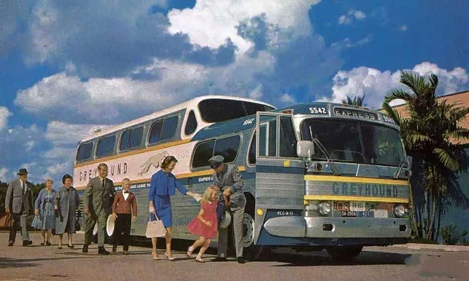 1955年,战后的美国开始兴建州际高速公路,私家车的发展,让人们慢慢远离巴士出行,灰狗巴士也受到了相当大的冲击。灰狗巴士公司开始转型旅游线路。