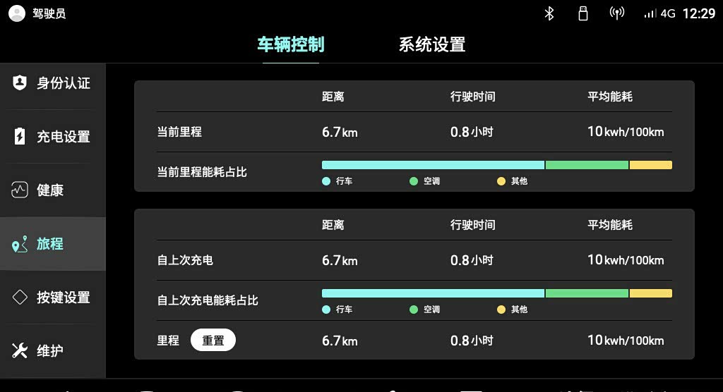 同时在旅程界面进行优化,新增行车、空调等能耗占比显示条,方便驾驶者对车辆情况实时掌握。
