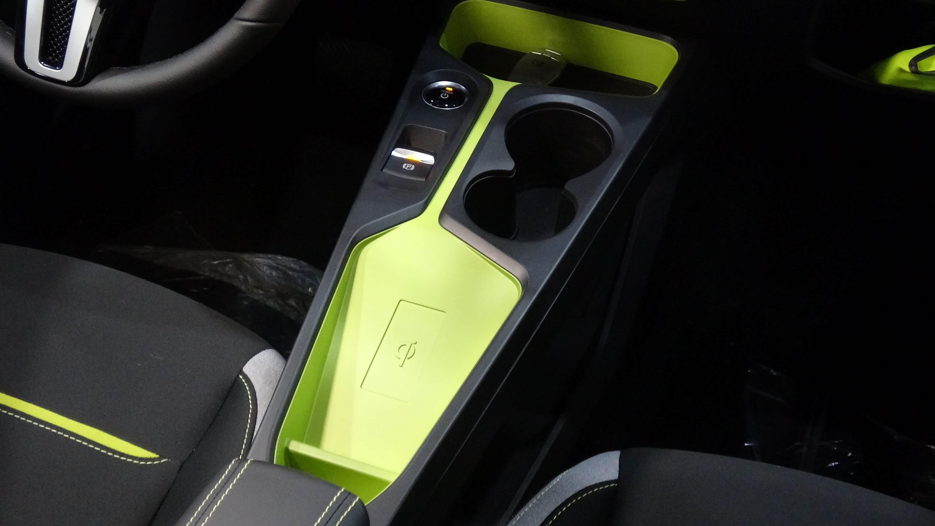 来到车内,内饰整体给人一种年轻新潮的感觉,它采用了一个撞色的设计风格,该实拍车型以黑白绿色作为主要色调进行搭配,除此之外官方还有黑白金色相互搭配的版本。