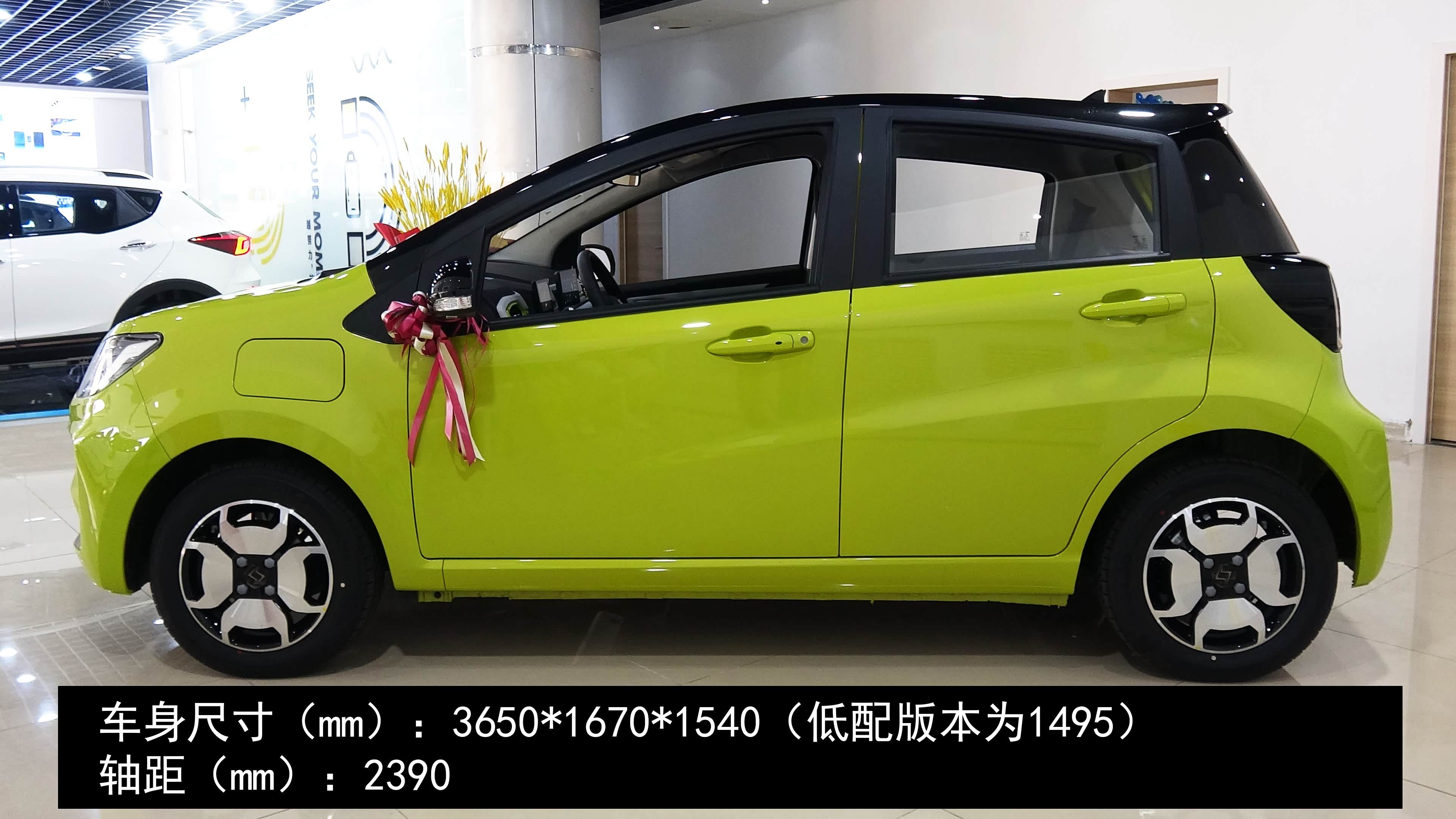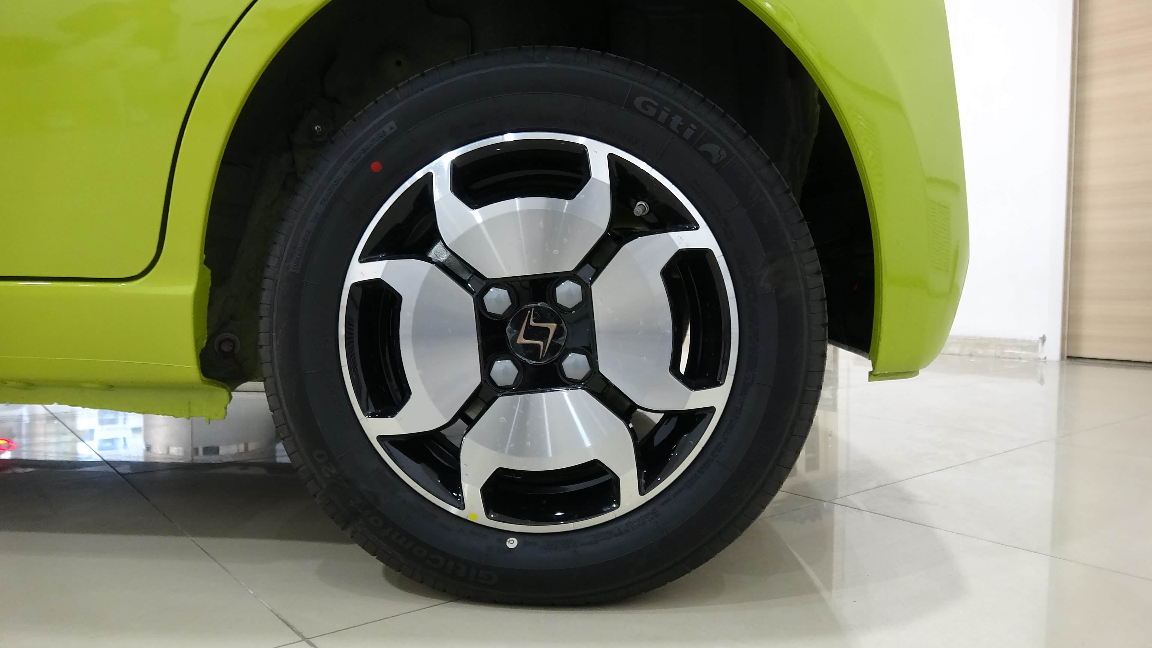 来到侧面能看到这是一个比较常规的微型车的造型,比较有特点的是它的轮毂造型,它采用了一个四叶双色的铝合金轮毂,寓意为代表幸运的四叶草,轮胎尺寸为165/65 R14。配置方面,车辆的前排驾驶位带有无钥匙进入。