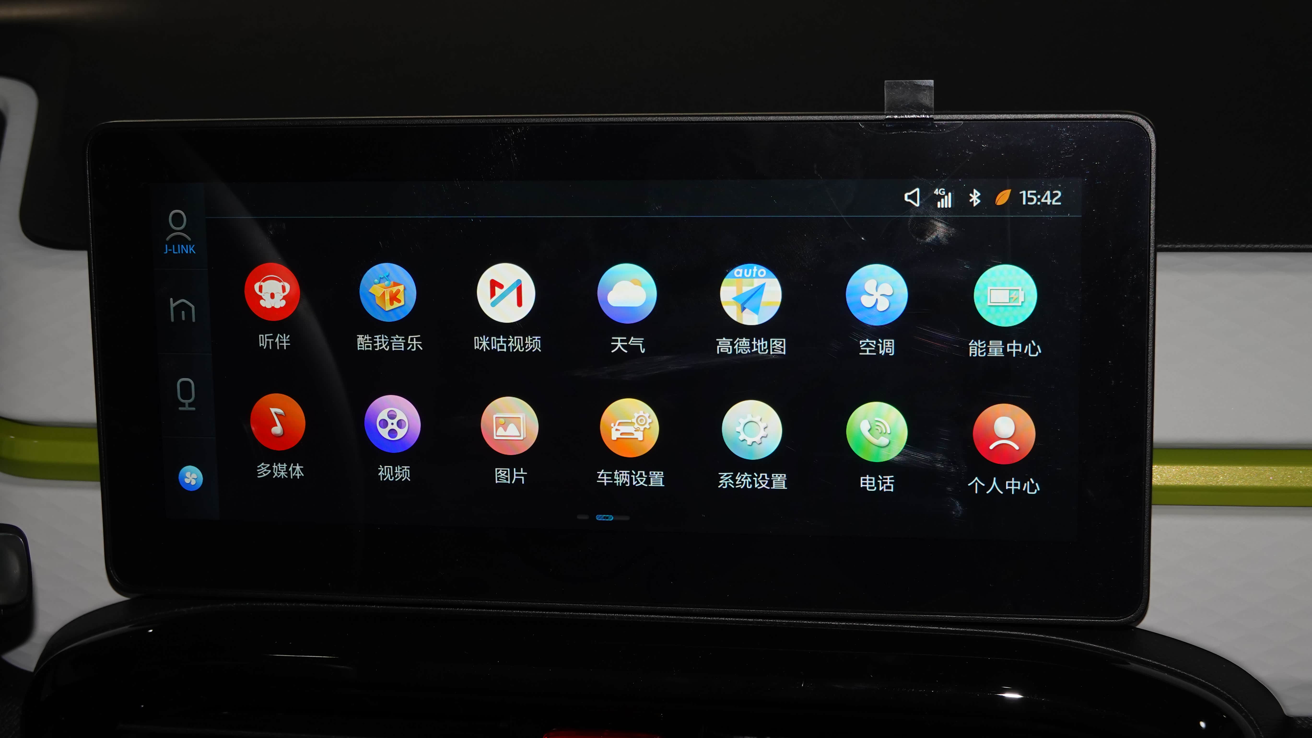 为了达到数字化座舱的效果,在全液晶仪表的基础上,中控台上方是一块10.25英寸的触控液晶屏,其中内置了酷我音乐、咪咕视频、高德地图、语音控制、倒车影像等功能。智能交互层面,内部搭载了J-LINK 3.0智能网联系统和科大讯飞3.0智能语音系统,前者主要强调车联网,做到信息实时化;后者主要强调精准的交互功能,具体指车辆的多媒体、导航、空调等功能均可通过语音的方式进行控制。除此之外,思皓E10X还支持OTA以及手机App的远程控制,其中包括远程控制车门锁、开关空调、预约充电、定位寻车导航。