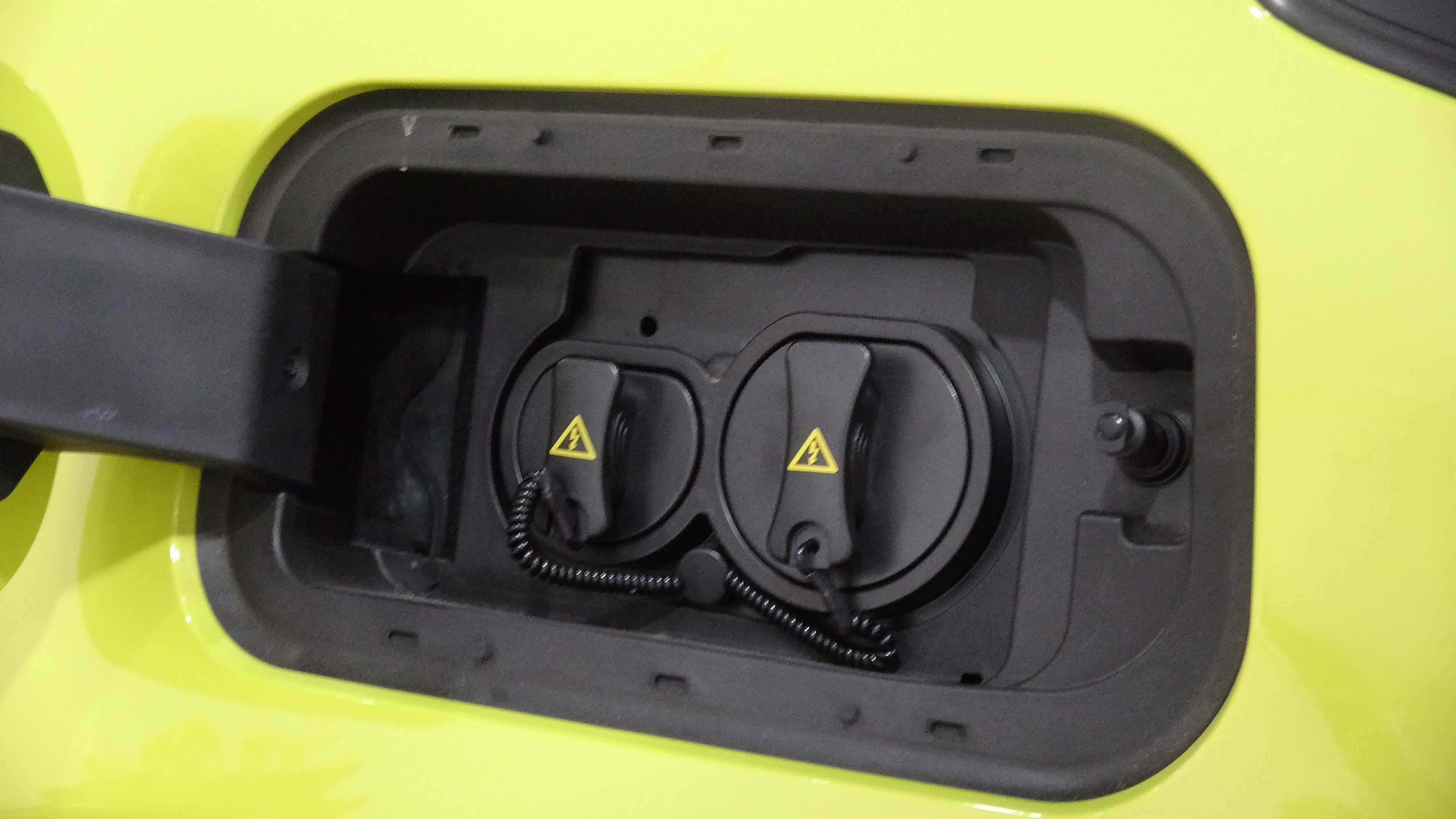 此外,充电口被放在了车辆的左前方,快充和慢充都在一个位置,这个细节还是很不错的。