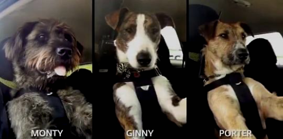 Porter、Monty和Ginny原本是3只无家可归的流浪狗,但幸运的是,它们被新西兰一家动物慈善协会救助了,而在救助它们后,人们又突发奇想的打算训练它们开车。
