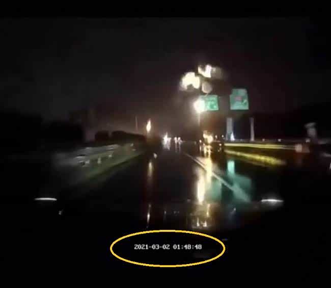 据网上一段视频显示,一辆领克汽车于2021年3月2日夜间行驶在高速路上,此时行车记录仪上的视频突然传出异常,并发出“咔嚓咔嚓”的声响,声音持续了数秒,能够清楚分辨出这辆车一定出现了某种意外(见下图)。