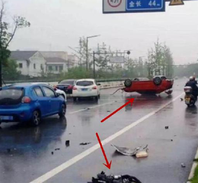 据了解,在去年下半年,一辆红色领克03试驾车行驶在路上,由于路面太湿滑,试驾人员操作出现了失误,结果撞上了路边的护栏,导致整个车辆发生了翻车(见下图)。