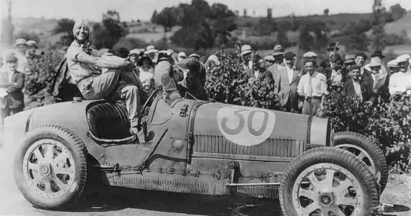 要说开山祖师,Hellé Nice绝对当仁不让。这位曾经的滑雪爱好者在摔伤膝盖之后迷上了开车,从此便一发不可收拾。在1929年拿下一场全女子赛车比赛的冠军之后,Hellé在30年代结识了布加迪掌门人埃托尔·布加迪,从此开始了驾驶布加迪Type 35C(上图就是)的日子。