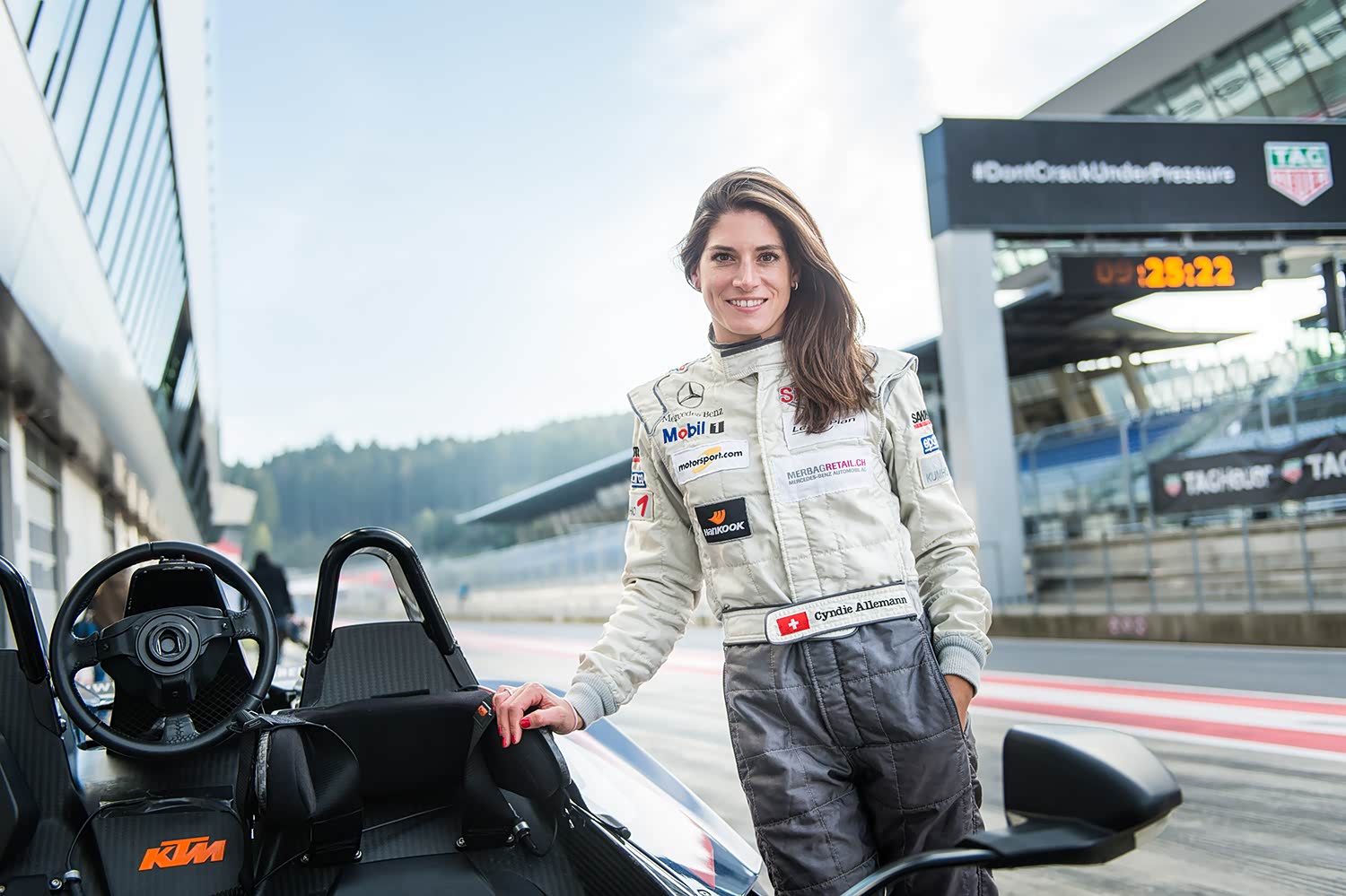 说起瑞士女车手,除了Simona自然还要说说Cyndie Allemann。Cyndie的赛车天赋大概遗传自曾在Go-Kart系列赛拿过车手冠军的父亲,她的职业轨迹比起Simona要单纯许多:2010年之前主攻级别较低的开轮式赛车,而在此之后则活跃于FIA GT1和日本Super GT。值得一提的是,Cyndie是有史以来第一位进军日本SGT的女性。